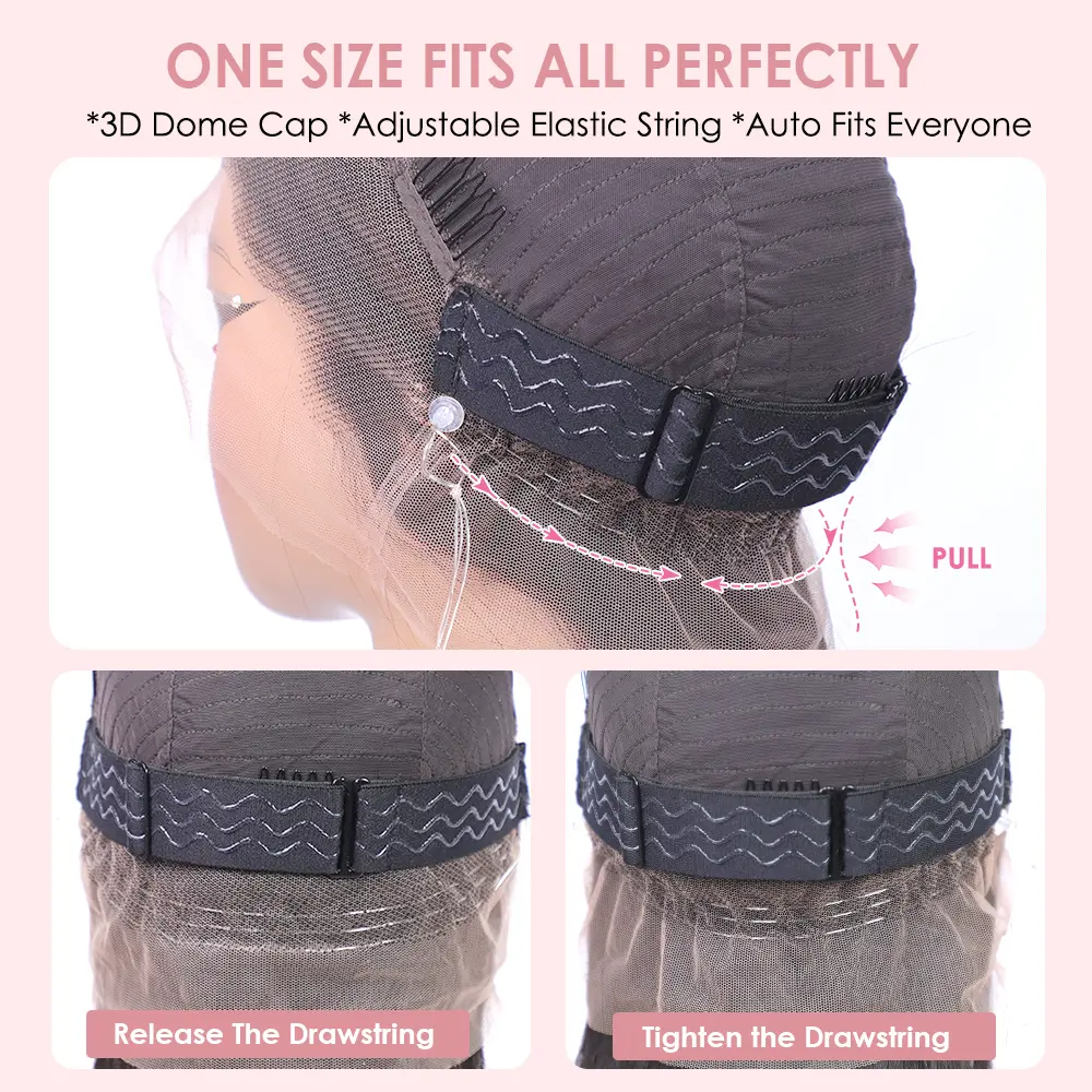 Pizazz Hair Hidden Strap 360 Drawstring Glueless Wigs Human Hair Pre Plucked Pre Bleached Knots 220 Density Water Wave Full Lace Frontal Wig with Drawstring Curly HD Lace Wigs for Women