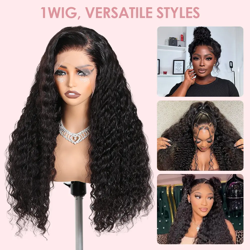 5. Pizazz Hair Hidden Strap 360 Drawstring Glueless Wigs Human Hair Pre Plucked Pre Bleached Knots 220 Density Water Wave Full Lace Frontal Wig with Drawstring Curly HD Lace Wigs for Women
