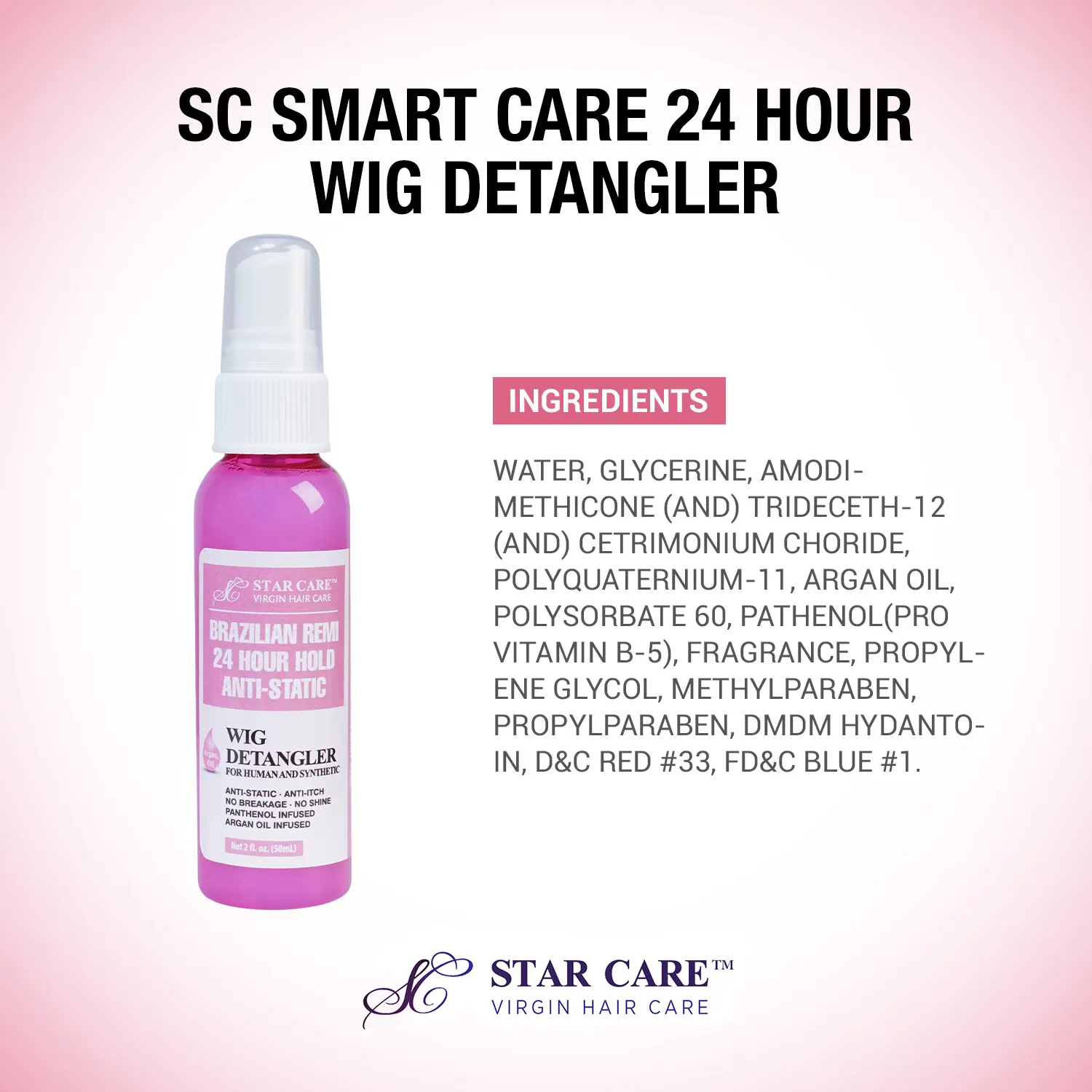 Star Care Brazilian Remi 24 Hour Hold Anti-Static Wig Detangler 2oz