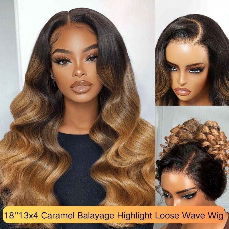 18'' 13x4 Caramel Balayage Highlight Loose Wave Wi