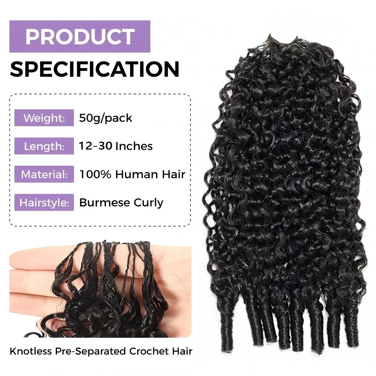 【Knotless Crochet 】Tahikie Burmese Curly Crochet Human Hair For Mircale Knots Human Hair Feather Water Wave Curly  Wave Crocher Human Hair For Miracle Knots  Pre- Separated 50g Recommended #TiktokShopSpringGlowUp #RefreshedLook