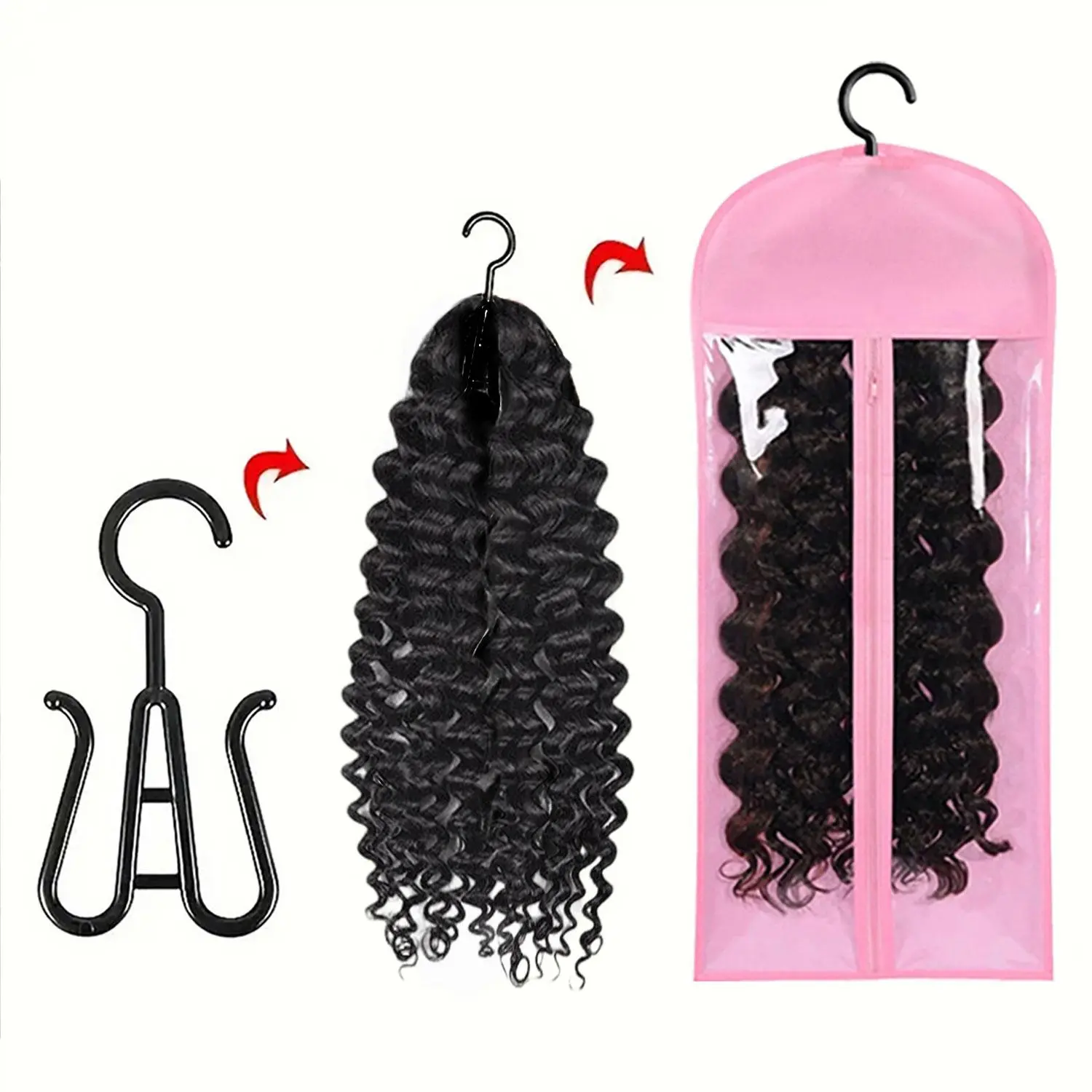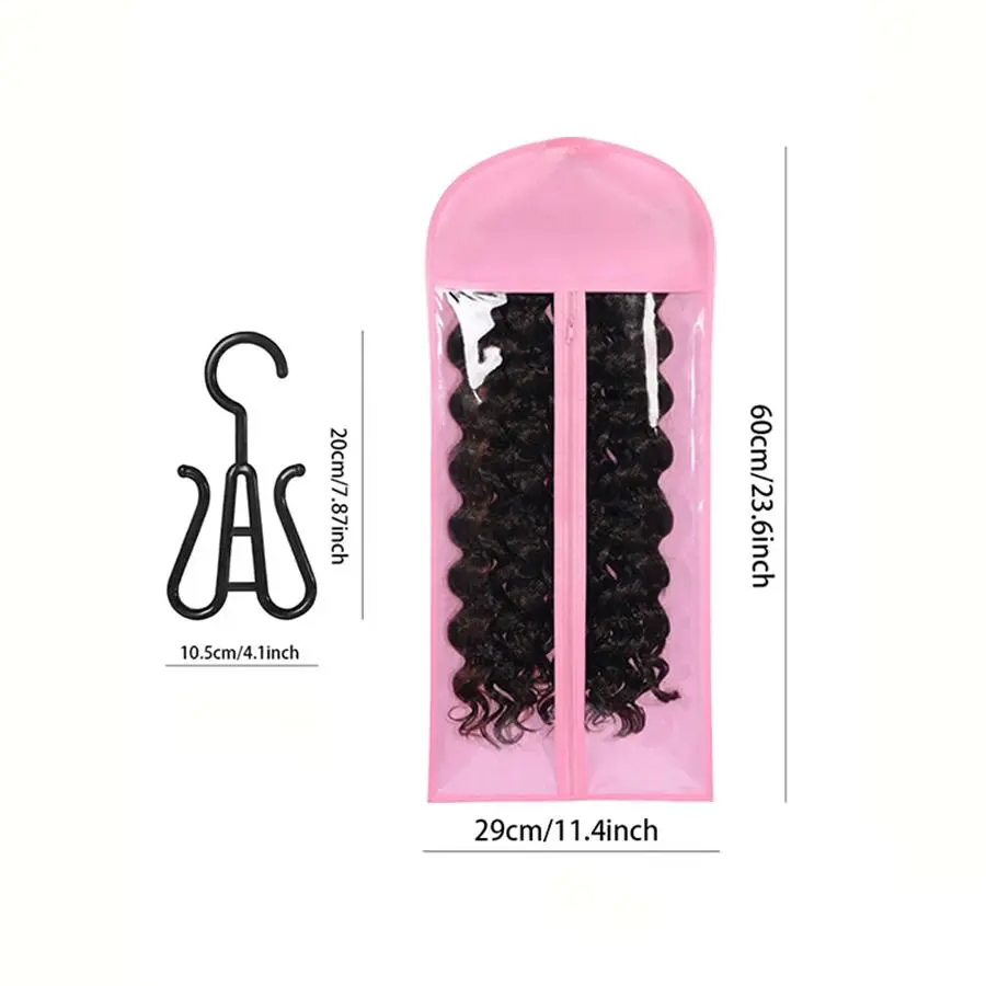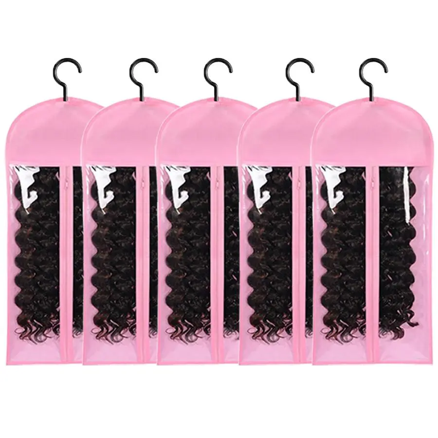 Wig Storage Bag with Hook, 5 Counts/set Synthetic Hair Extensions Transparent Dustproof Wig Storage Bag for Hair Replacement, Curly Hair Extension Holder, Wig Tool, Wigs Accessories for Salon & Home Use