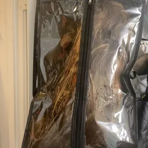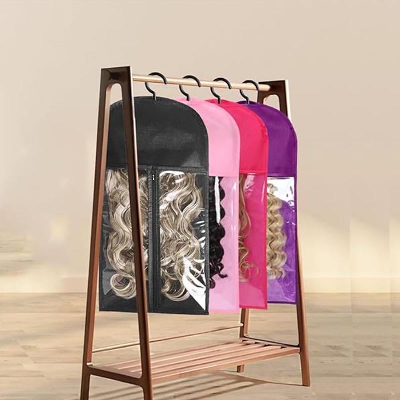 3pcs Wig Storage Bag with Hook and Zipper, Transparent Dustproof Wig Storage Bag and Hanger, Hair Extension Holder Wig Bag, Wigs Accessories for Salon & Home Use