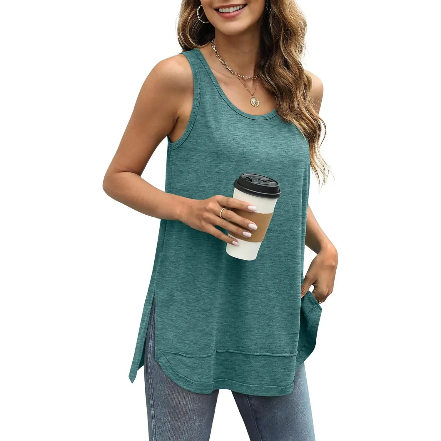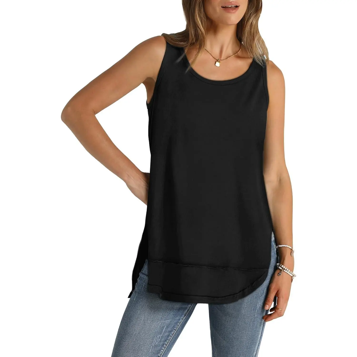 Loose Fit Flowy Tanks, Figure-Flattering with Belly Coverage