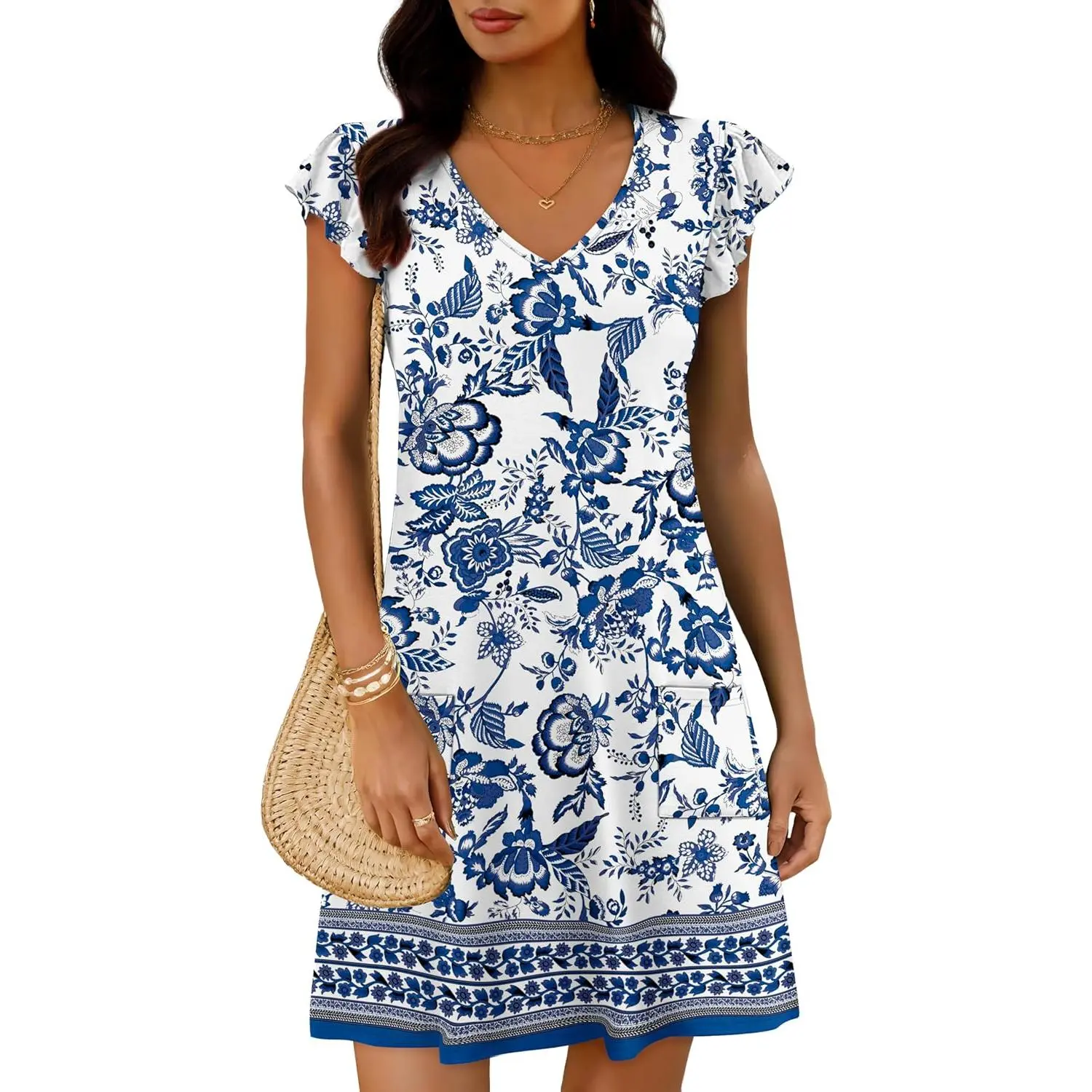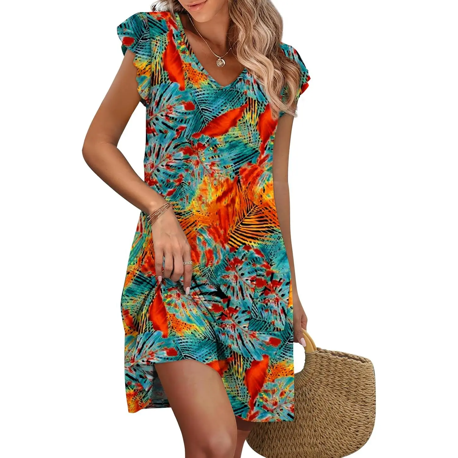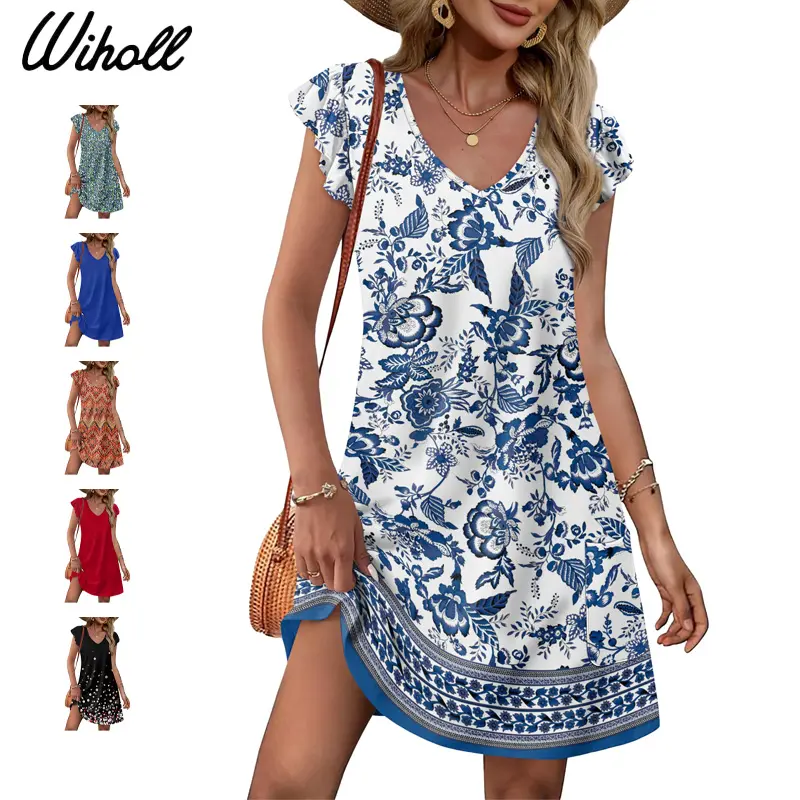 2026 Women‘s V-Neck Swing Dress – Ruffle Sleeves + Pockets!