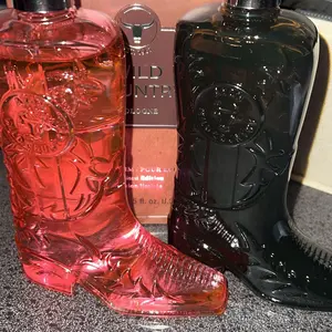 Pink one smells amazing! Brown one smells like a grandma and not like a male scent at all.