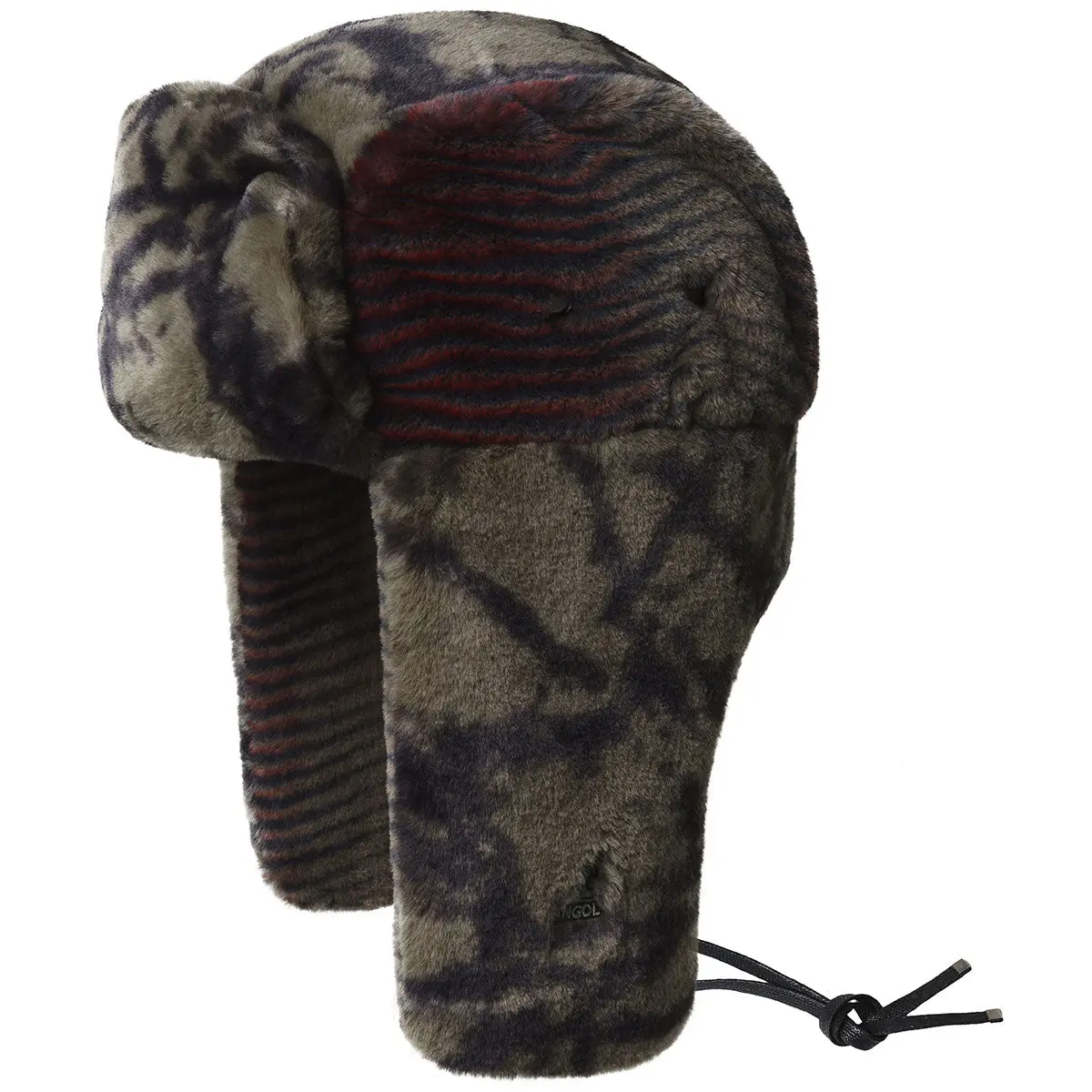 The Wild Fur Trapper has an oversized fit and fun, plush faux fur that will keep you cozy. This style combines leopard and snake patterns in fun colors to create a scene stealing winter item. The cords will help you tie up the flaps as desired and the classic Kangaroo logo on the left earflap will let 'em know where you got it.