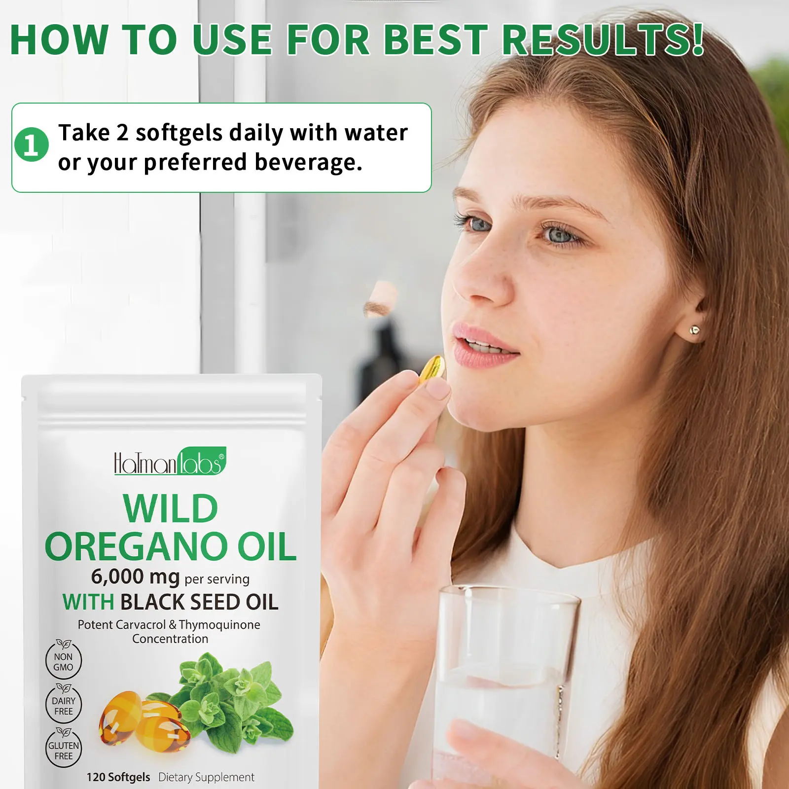 Wild Oregano Oil with Black Seed Oil - 6,000 mg per Serving,seed oils–for Daily Energy Boost Supplement Nutrition oil oregano Organic Healthcare Green Fitness Dietary Edible