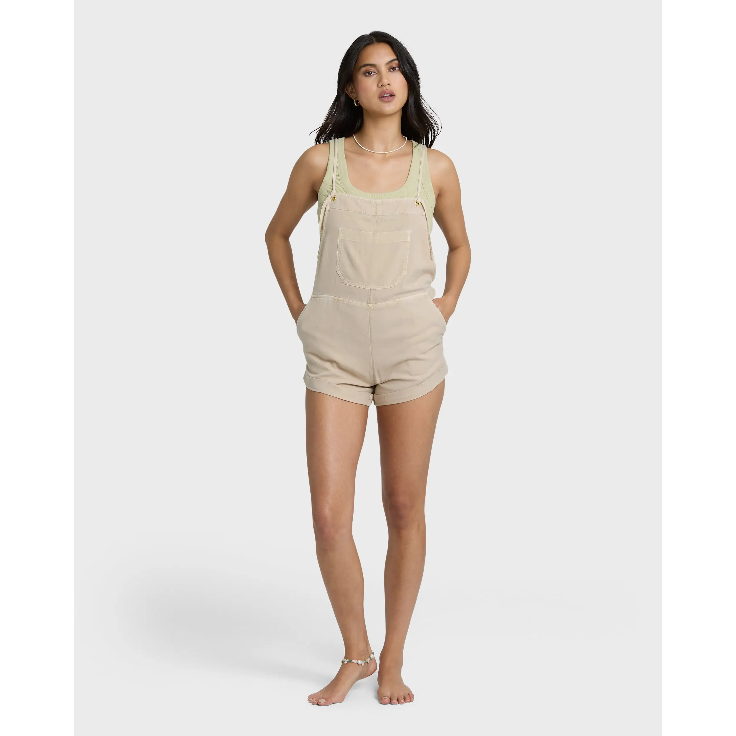 Ready for adventure in our Wild Pursuit Overalls. These cotton-viscose rompers feature a regular fit with a 3¼" inseam, perfect for warm-weather fun. The adjustable tie straps ensure your ideal fit, while front slash pockets and back patch pockets keep essentials close. Finished with a signature metal plate detail.
