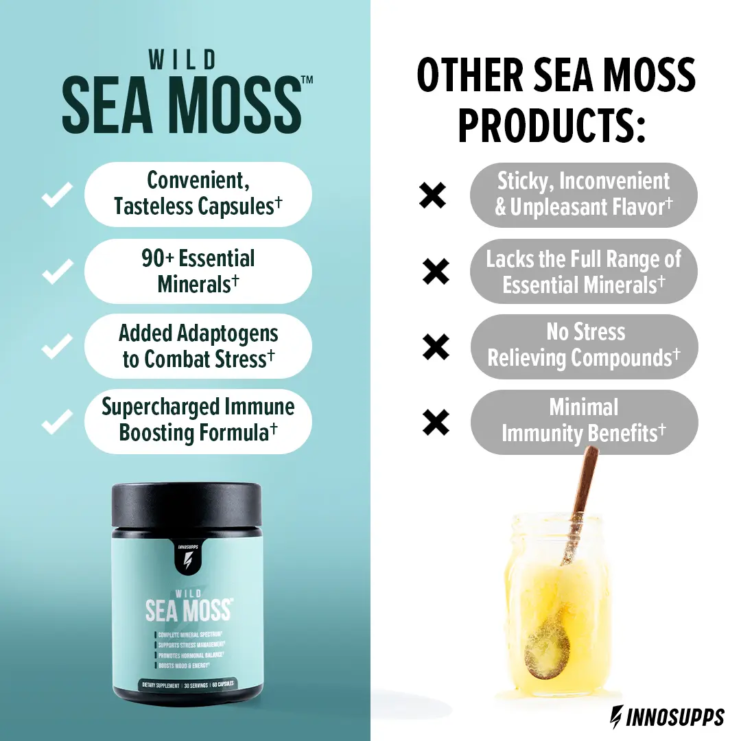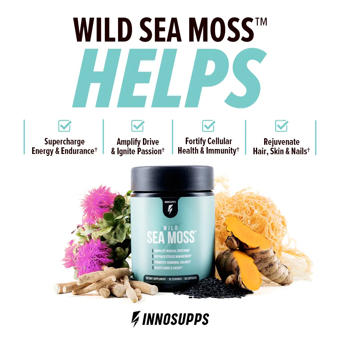 ✨ Inno Supps Wild Sea Moss is the all-in-one superfood for optimal vitality. Power your body and mind with this easy-to-take formula, packed with essential minerals, adaptogens, and herbs. Ideal for adults enhancing their overall wellness, this nutrient-rich blend meets various health needs. Irish Sea Moss provides up to 90 of the 102 essential minerals necessary for peak performance.