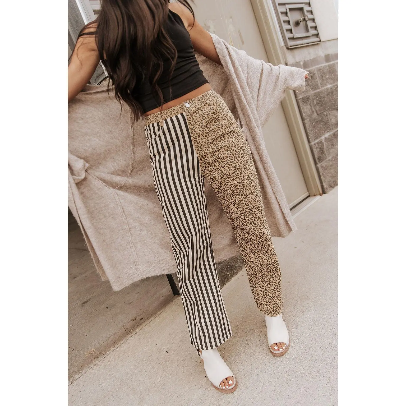 These pants said “why pick one vibe?” 😂 Stripes on one side, leopard on the other… and somehow it works. The most fun pair I’ve seen in forever! #stripedpants #cutejeans #leopardjeans #tiktokshopcreatorpicks #cuteoutfits