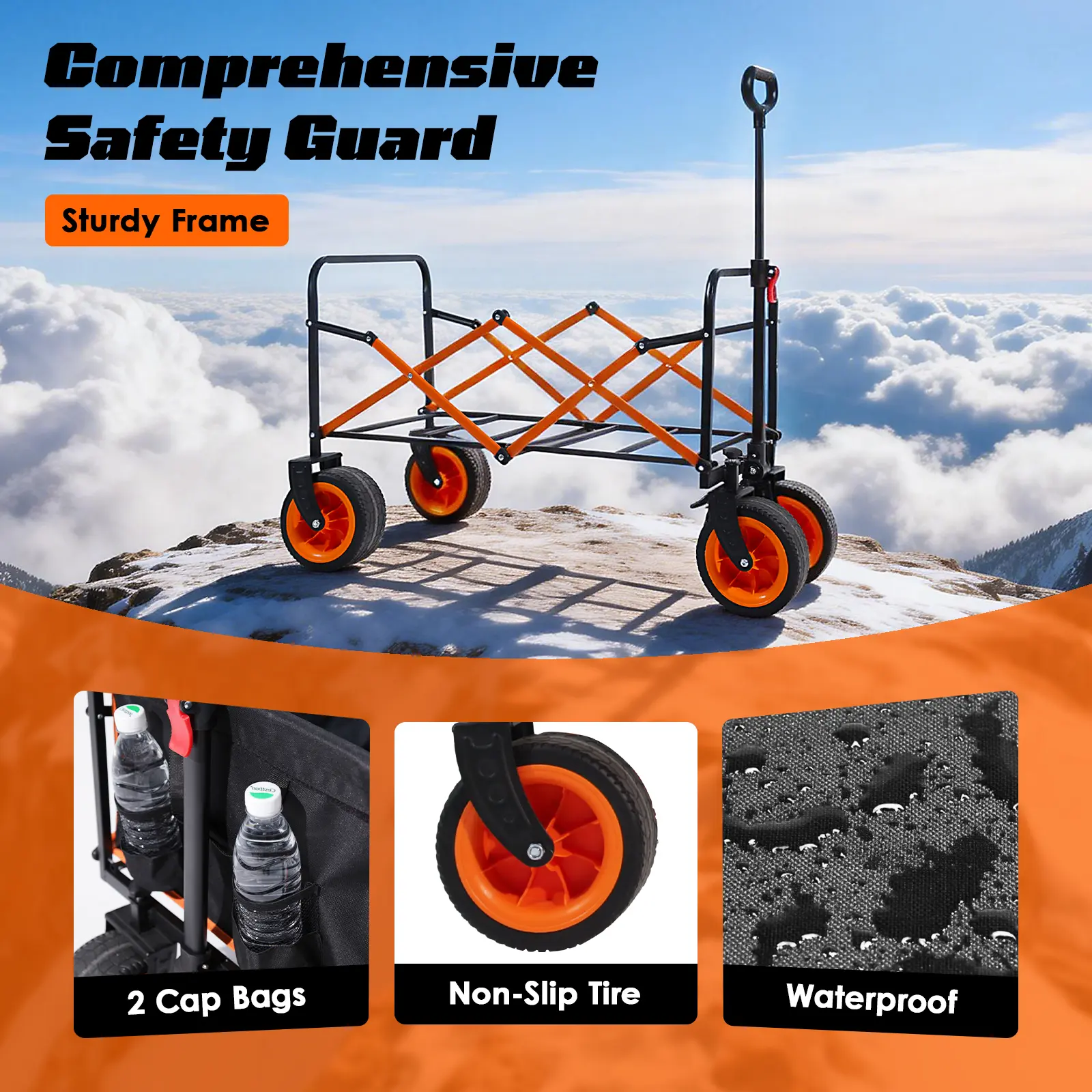【Foldable Wagon - Upgraded Weight-bearing Design】:WildFinder wagons carts foldable is made of high quality pressure resistant alloy steel, and the steel tube is thickened by 50% to make the collapsible wagon more solid. 330LBS weight capacity.
