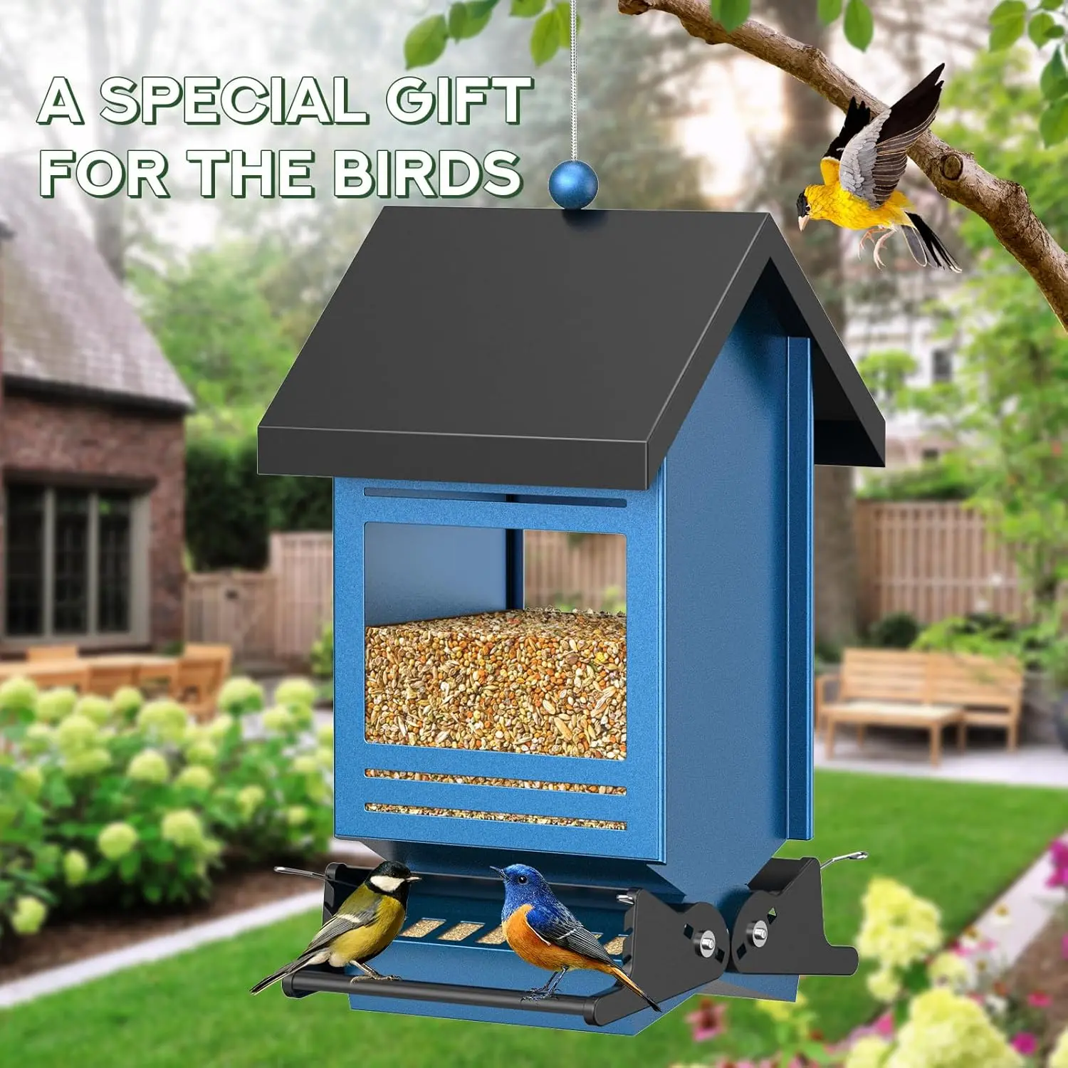 This beautifully designed bird feeder attracts a wide variety of bird species. It adds a charming touch to your yard or garden, enhancing its overall beauty. 🐦
