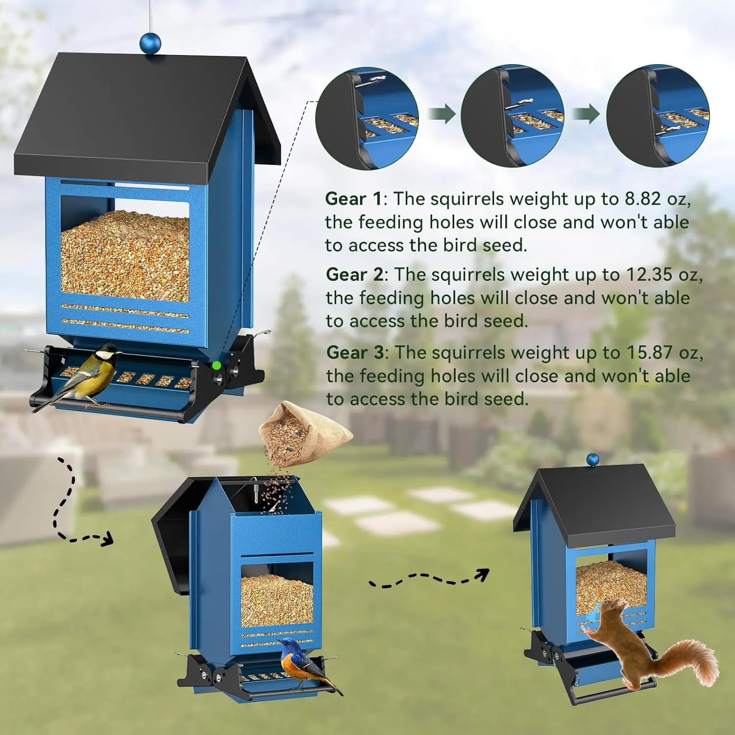 Featuring a unique design, this squirrel proof bird feeder prevents over 90% of squirrels from raiding bird food. You can enjoy birdwatching without worry! 🐿️