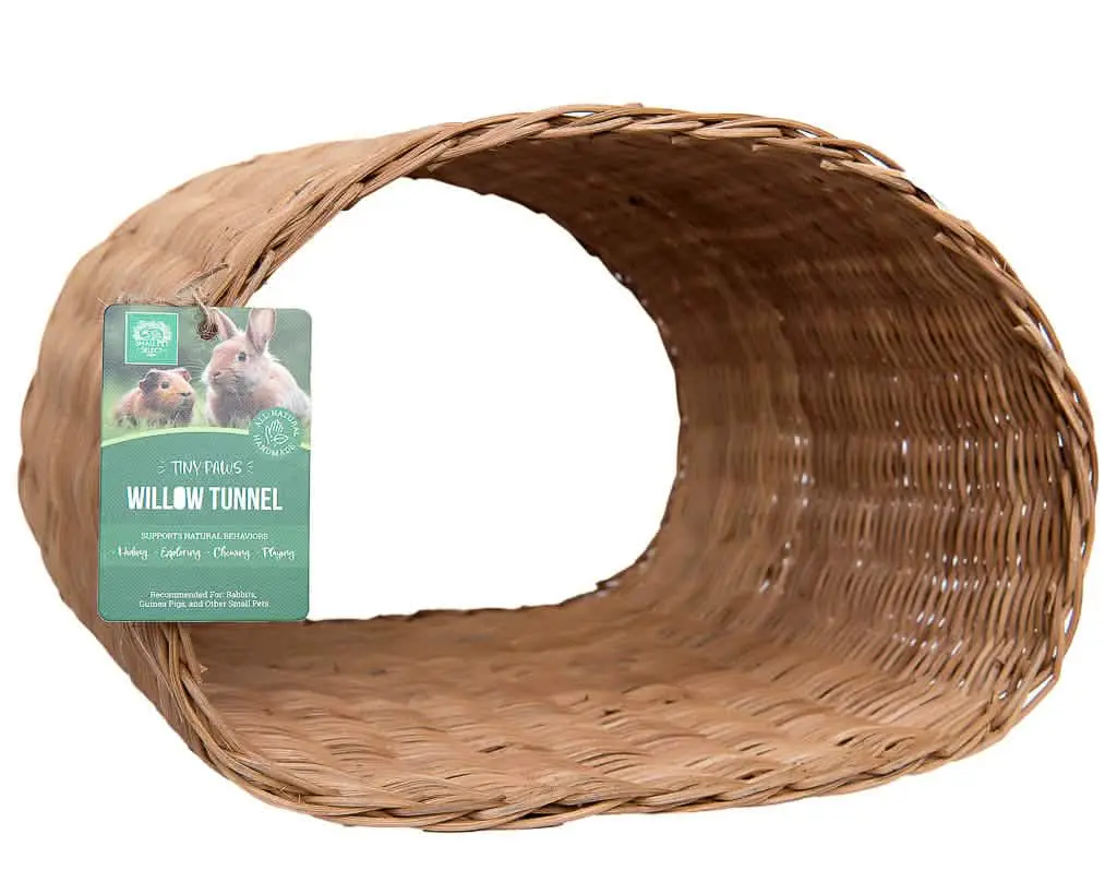 Our Guinea pigs LOVE this large willow tunnel! They takes turns running through it and love to nibble on it. It’s much larger than I thought it would be. A great price for such a large tunnel.