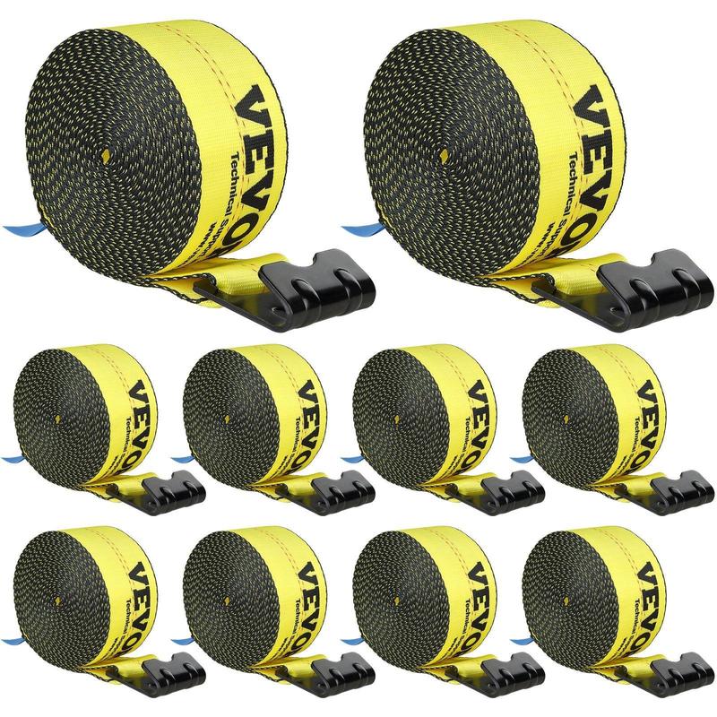 5. VEVOR Winch Straps, 4" x 30', 6000 lbs Load Capacity, 18000 lbs Break Strength, Truck Straps with Flat Hook, Flatbed Tie Downs Cargo Control for Trailers, Farms, Rescues, Tree Saver, Yellow (10 Pack)