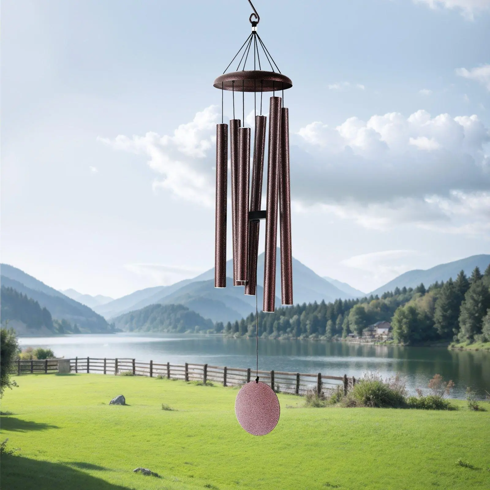 ·45-Inch Wind Chimes for Outside: Our bronze metal wind chimes feature 6 aluminum tubes, with the longest tube measuring 21.6" and a diameter of 1.18". The durable nylon cord and high-density clapper produce a rich, melodious sound. It includes a postcard, a greeting card, and an envelope.