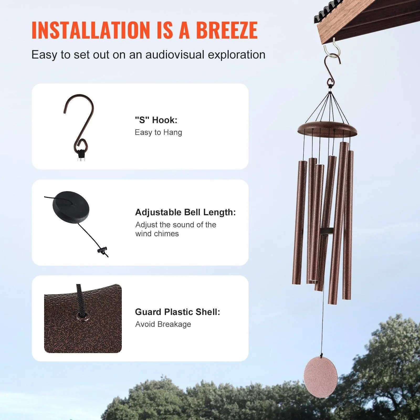 ·Exceptional Quality Features: Crafted from aluminum and anodized with a bronze color, wind chimes for outside can withstand outdoor elements. The strong nylon cord, thickened tube walls, and "S" hook provide superior durability and long-term use.