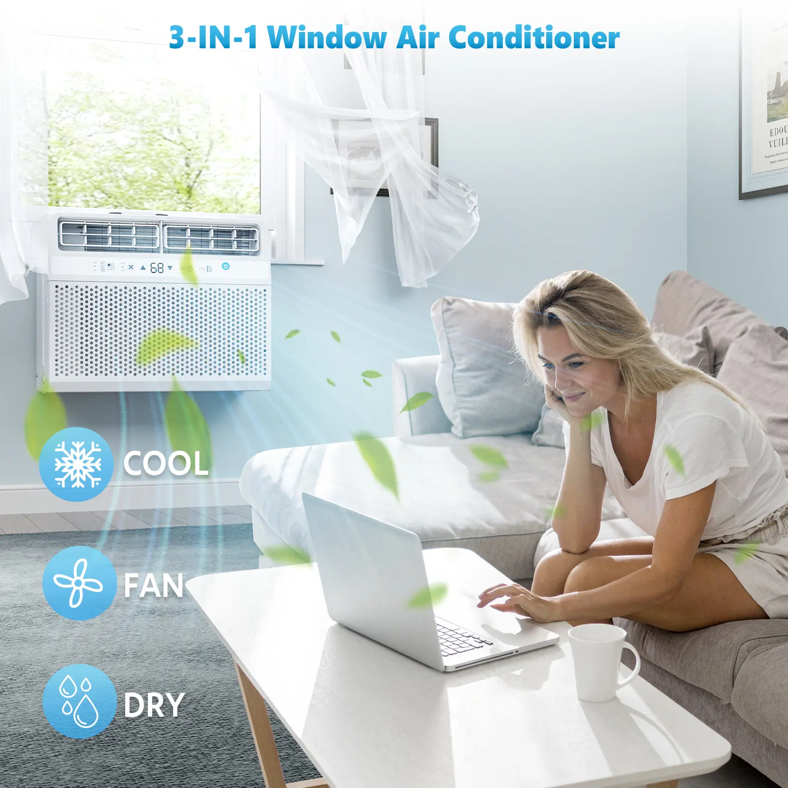 ·3 IN 1 Window Air Conditioner: Our air conditioner has 3 operating modes: cool, dry, fan. In dry mode, it functions as a dehumidifier, removing up to a whopping 72 pints of moisture per day. Three fan speeds allow for adjustable cooling performance, and auto, energy saver, and sleep modes provide optimal comfort at any time. Plus, its adjustable louvers let you focus the air in the direction you want it.