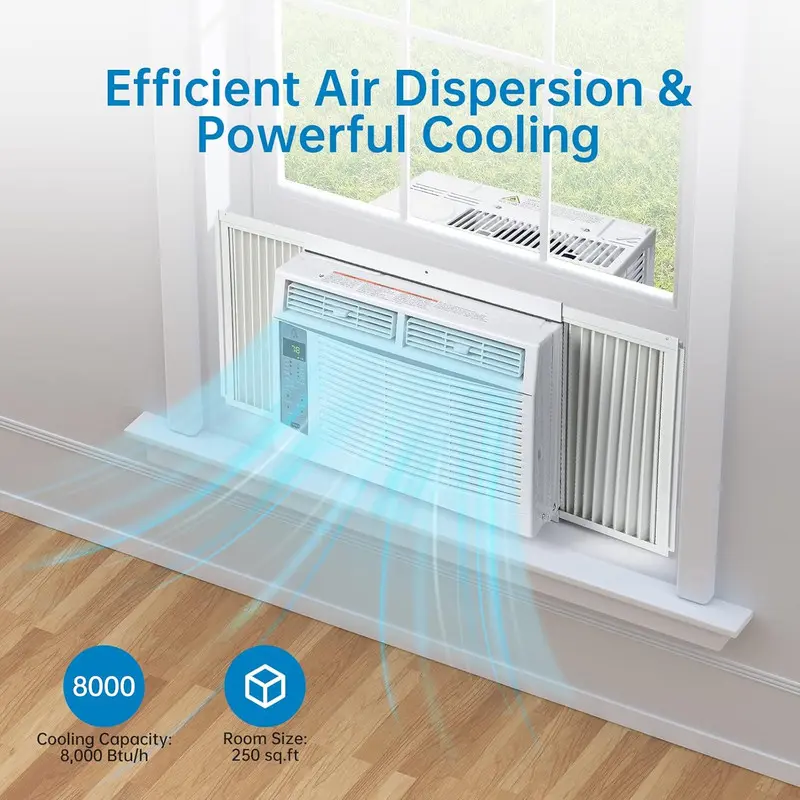 【Fast Cooling】 The 6,000 BTU window-mounted air conditioner efficiently cools compact spaces up to 250 square feet, rapidly transforming the temperature in your home, office, or apartment