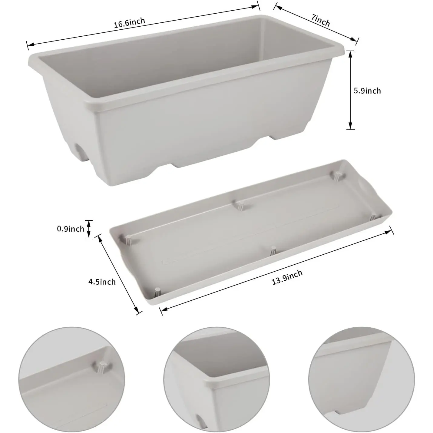 RECTANGULAR BOX PLANTER FOR WINDOW – This rectangular window planter box was designed specifically for windowsill planting projects. It measures 17x7x6.3 inches and is able to fit perfectly windowsills, windows, balconies, and other narrow areas. As a result, you will be able to have your very own miniature planting garden in a space that is only a few square in size.