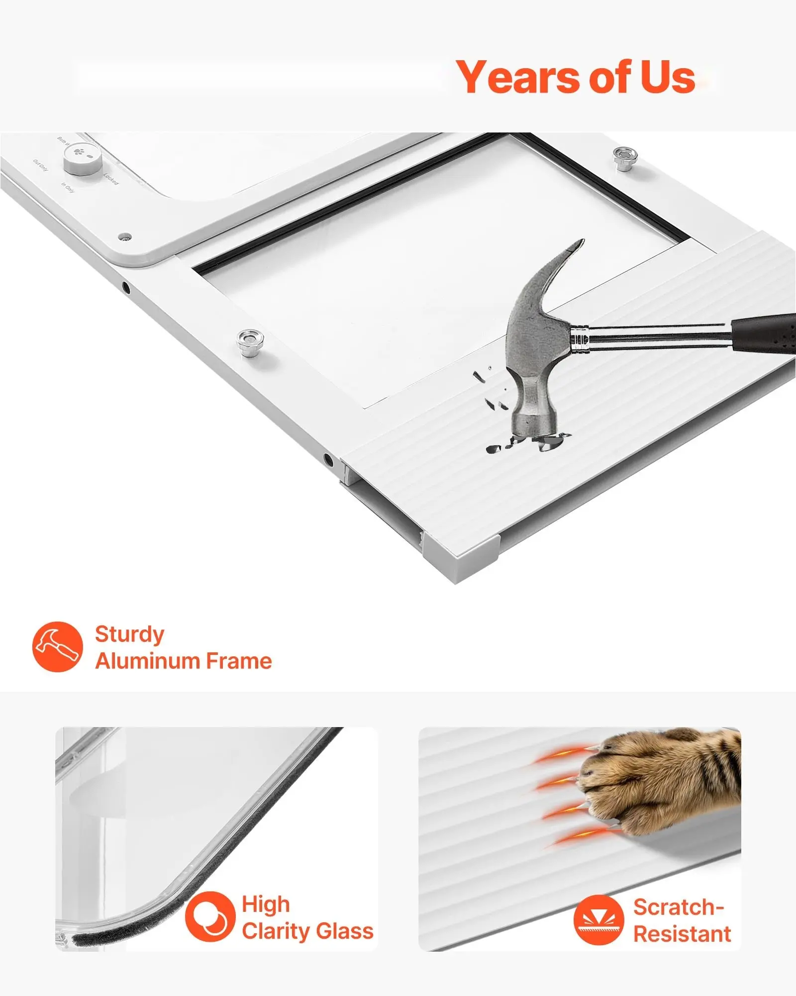 ·Premium Aluminum Alloy Frame: Crafted with a sturdy aluminum alloy frame and a clear, scratch-resistant flap, this window pet door for cat holds up to daily use and your cat's curious adventures