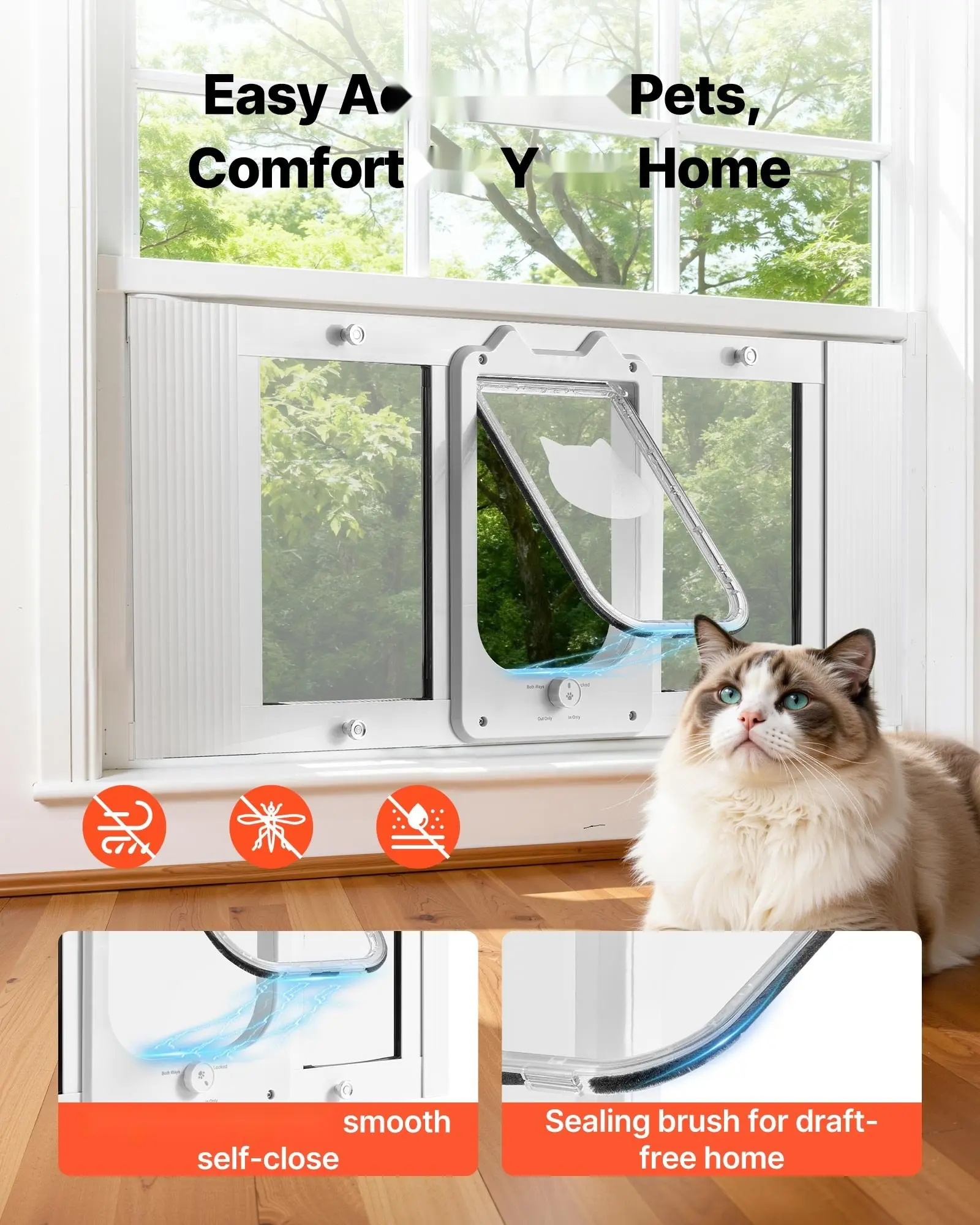 ·Smooth Auto-Close & Tight Seal: The magnetic flap pairs with a brush-lined edge for smooth, quiet self-closing and a secure seal. Our window pet door helps keep your indoor space warm and clean as your cat moves through