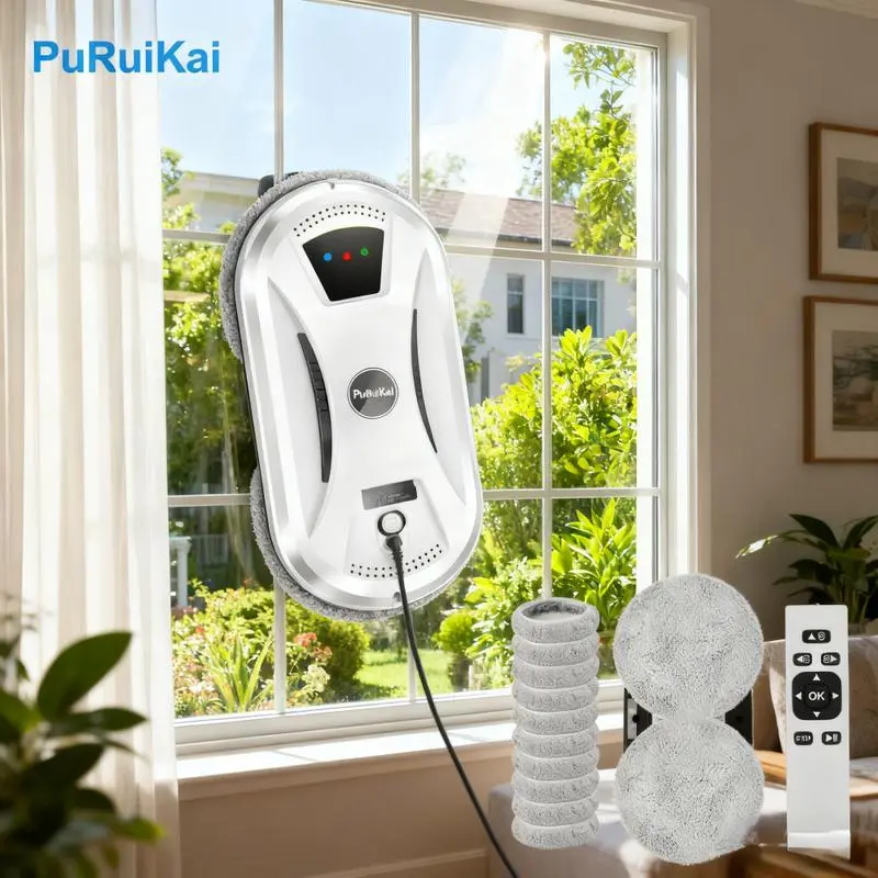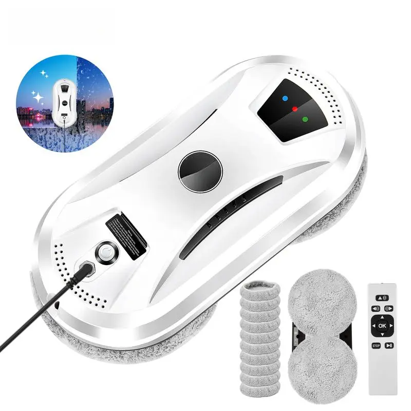 1. Convenience: Fully automatic operation saves time and effort. 2. Safety: Provides a secure cleaning experience with high-quality materials and a sturdy build. 3. Versatility: Suitable for cleaning windows in high-rise buildings. 4. Easy to Use: The remote control allows for effortless operation. 5. Efficient: Cleans windows thoroughly and leaves them spotless. Using way 1. Wait 20 seconds after starting up until the blue light stops flashing, then start working. Because the robot needs 20sec to detect the glass plane. 2. Connect the safety rope when using, avoid falling from high altitude. 3. Spray some water on the edge of the mop when working, it will be better effect. 4. If you receive the product, there are any accessories missing, or there is any problem with the quality of the product, please contact us asap, we can reissue or refund for you. Type: Fully Automatic High-rise Window Cleaning Machine Standard: Our window cleaning robots are available in European, American, British, and Korean standards. We will ship the correct version based on your shipping address, ensuring compatibility with your local voltage, current, and socket type. No plug converter is needed – just plug in and use right away. Remote Control: Yes Package includes: 1 X Fully Automatic Window Cleaning Machine