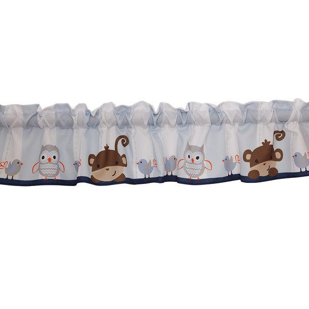 Our cute little monkeys decorate the window valance which is 53.5” x 9.5” with a 10” drop. Valance is made of a cotton/poly blend.