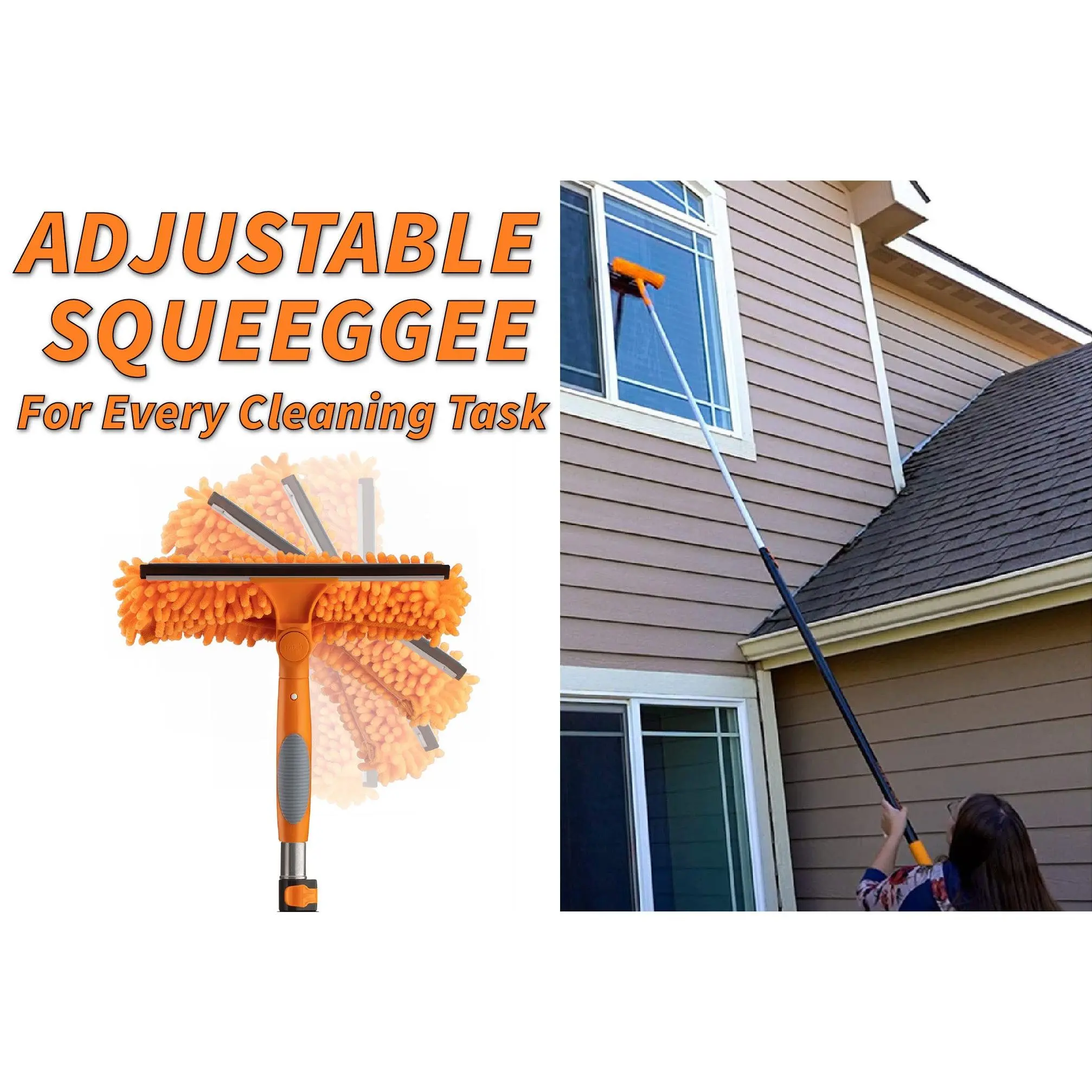 【EASY-TO-SWIVEL HEAD FOR PRECISE ACCESS】- Clean those tricky-to-reach window angles by adjusting your swivel squeegee head to suit your space. Press the button, pivot, and release to lock into place. No need to buy multiple cleaning tools - this combo window scrubber and squeegee will leave even non-standard windows sparkling clean. Ideal for arched windows, Vermont windows, transom windows, and witch windows.