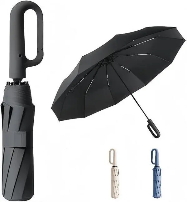 10-Rib Windproof Automatic Folding Umbrella with Loop Handle, Compact Fold, UPF50+ Sun & Rain Protection, Portable Compact Umbrella, Stylish Design, Suitable for Both Men and Women.