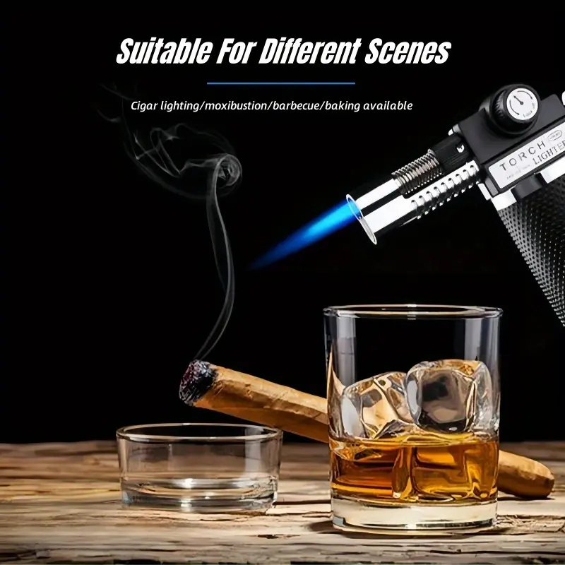 ► Powerful Windproof Jet Flame: Experience consistent lighting with our windproof torch lighter, designed to provide a powerful jet flame that resists even the strongest winds, perfect for outdoor conditions.