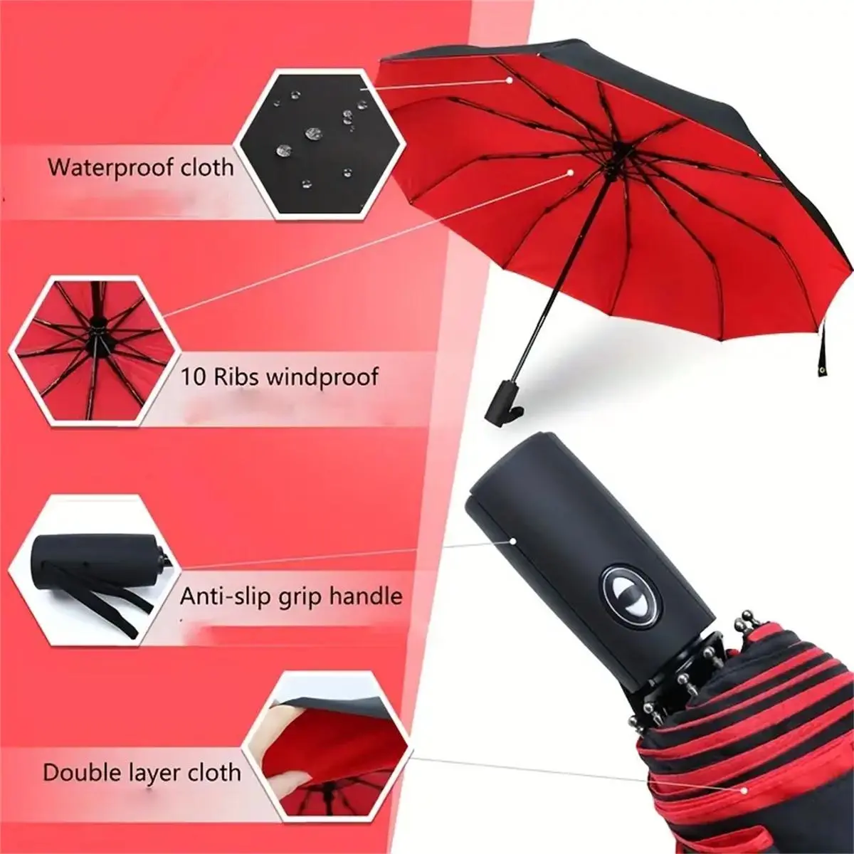 【Robust Frame】: Constructed with 10 sturdy ribs, this umbrella offers enhanced durability compared to standard umbrellas.