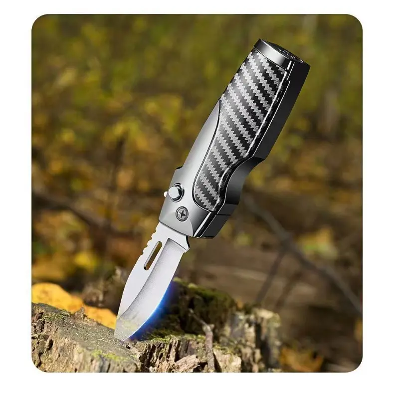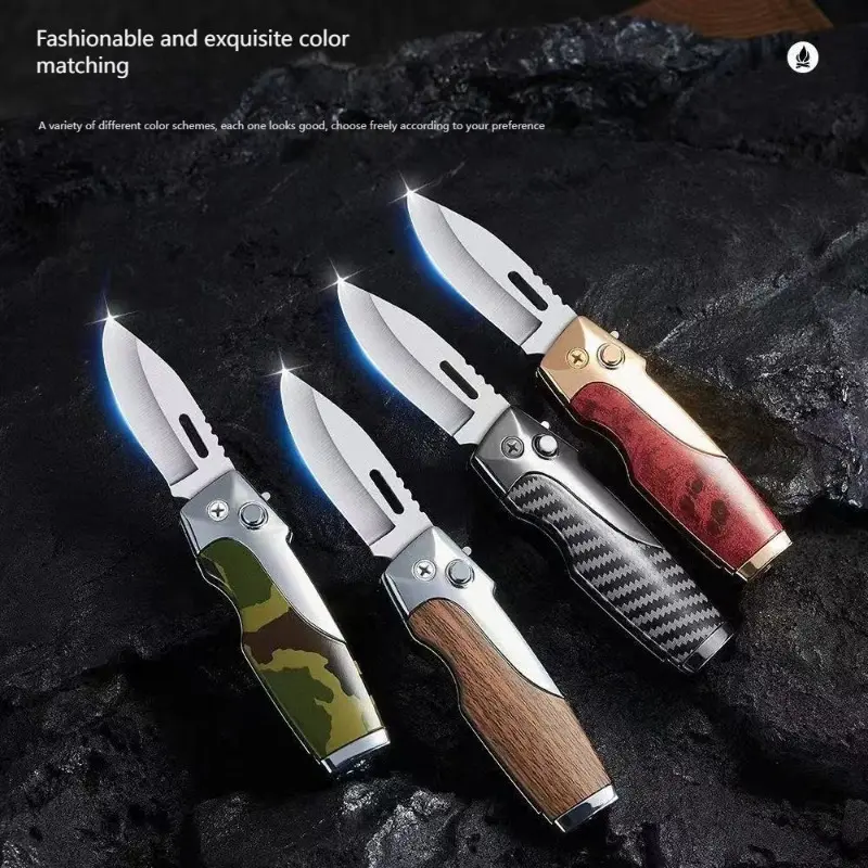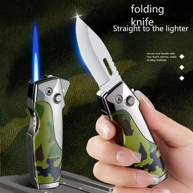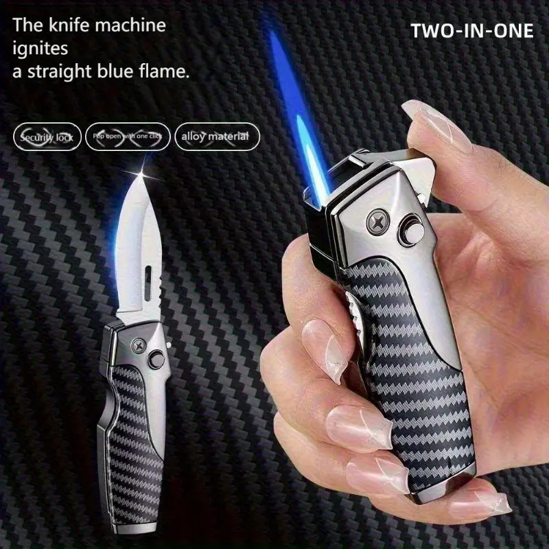 New Outdoor Metal Inflatable Windproof Lighter with Direct Injection, Multifunctional Folding Knife, Creative And Personalized for Men (Fuel Not Included)