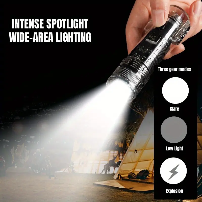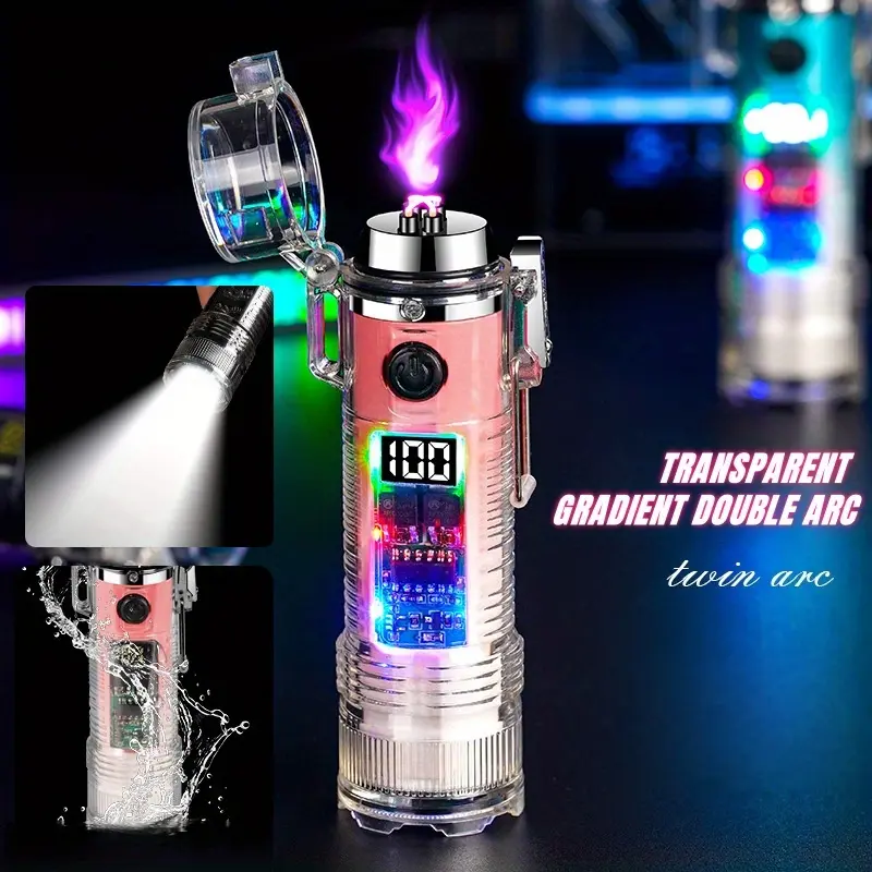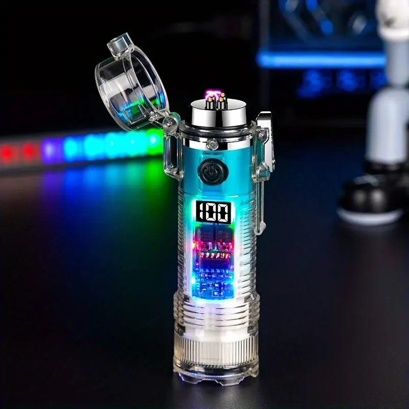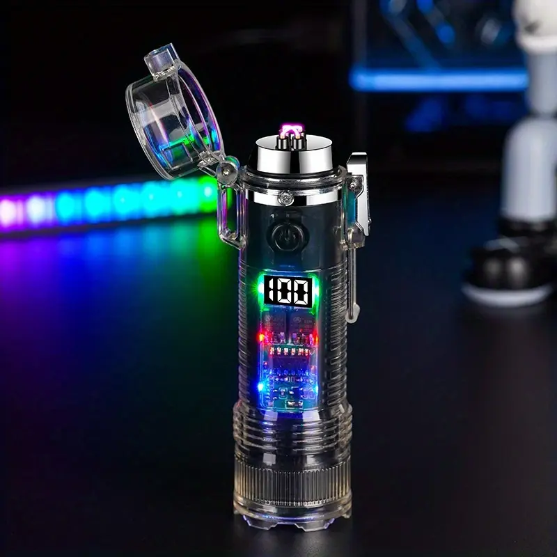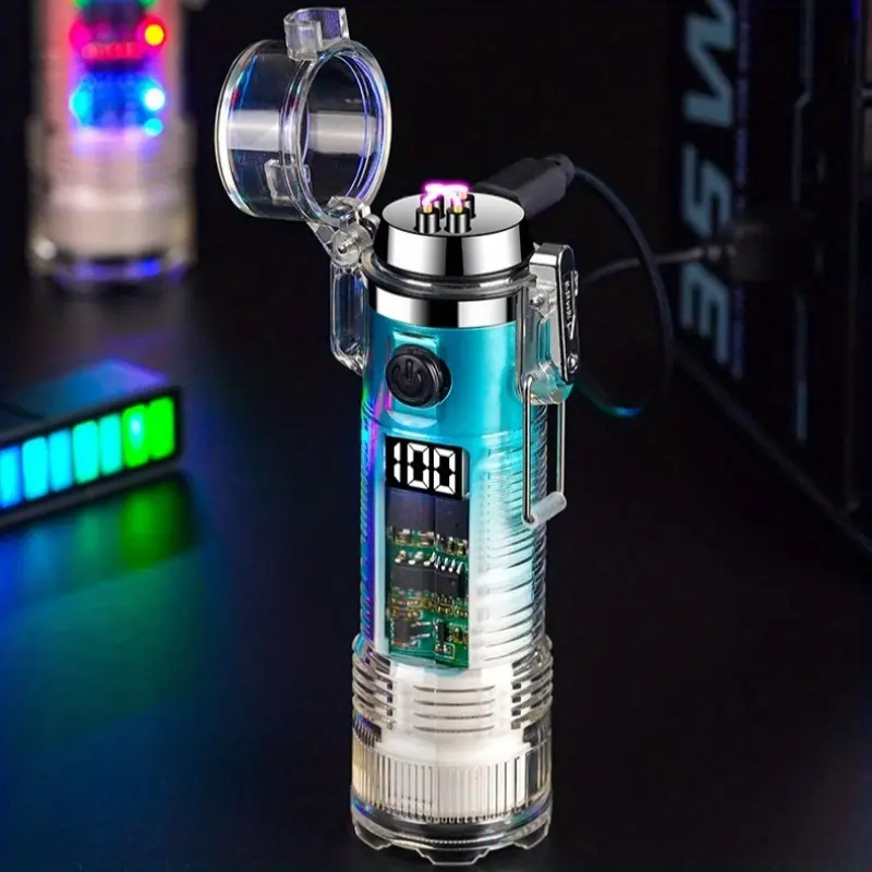 Windproof USB-C Rechargeable Lighter with Flashlight, Fast Charging,Compact & Portable for Camping, Hiking, Travel - Ideal Outdoor Survival, Gifts for Men, Electricians, Mechanics - Safe Flameless Plasma Ignition, Camping Gear
