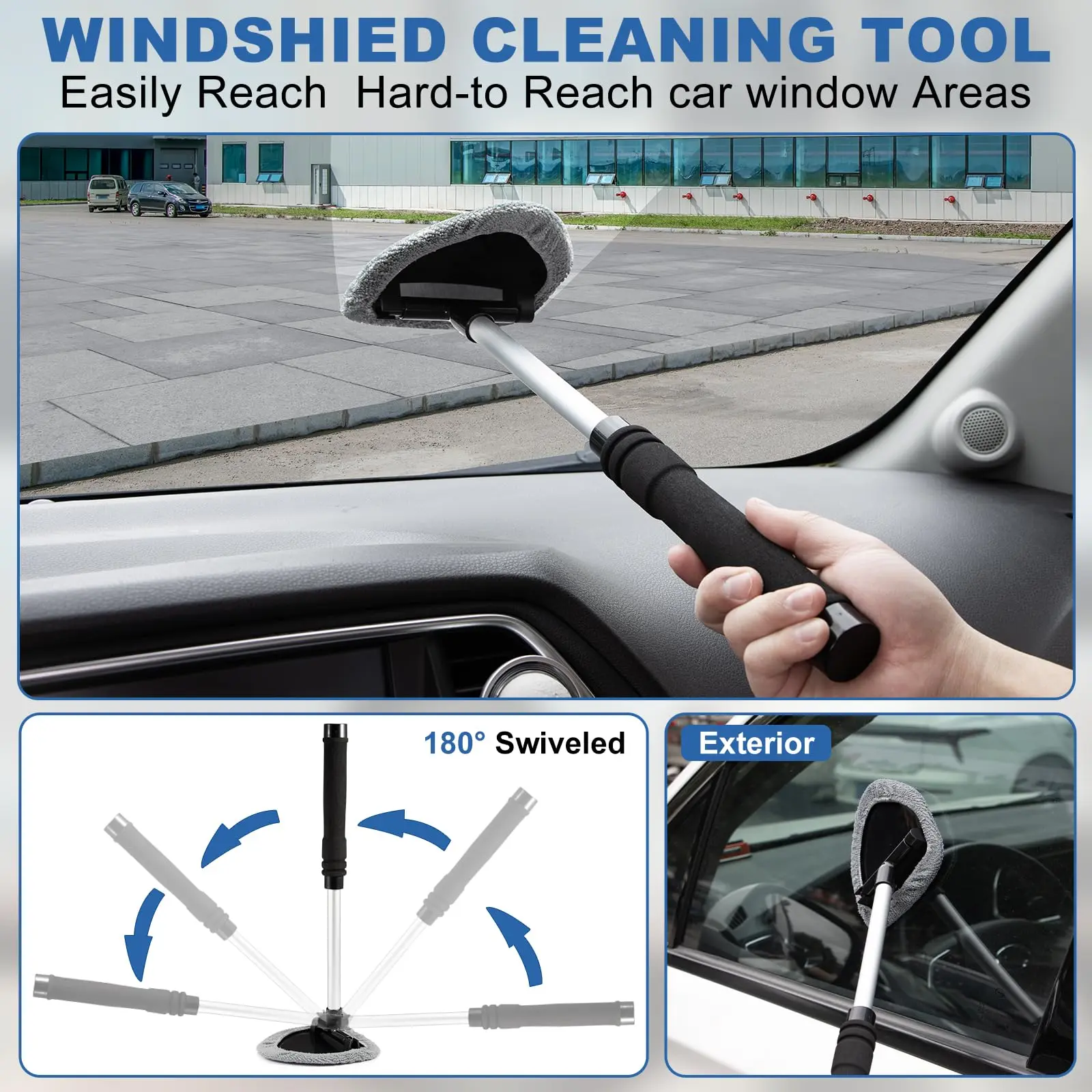 ·Windshield Cleaner: The Windshield Cleaner features an extendable handle with a 180°swivel head. The design allows the tool to fully conform to the glass surface and easily remove dust and dirt from hard-to-reach areas. Comes with 2 washable microfiber pads for streak-free glass cleaning. Cost-effective design ensures long-term use on automotive windows/mirrors