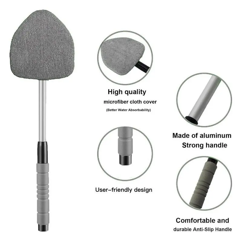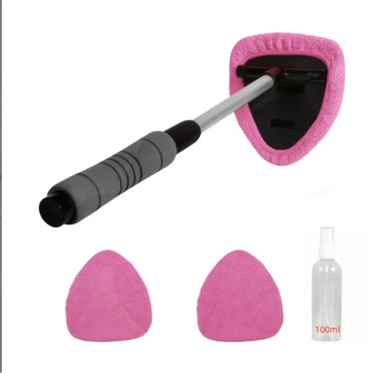 Elevate your car cleaning routine with this versatile tool!It features an extendable handle and three cloth pad heads, perfect for both interior and exterior glass.The kit includes a spray bottle for added convenience.Ideal for maintaining your vehicle's cleanliness effortlessly.