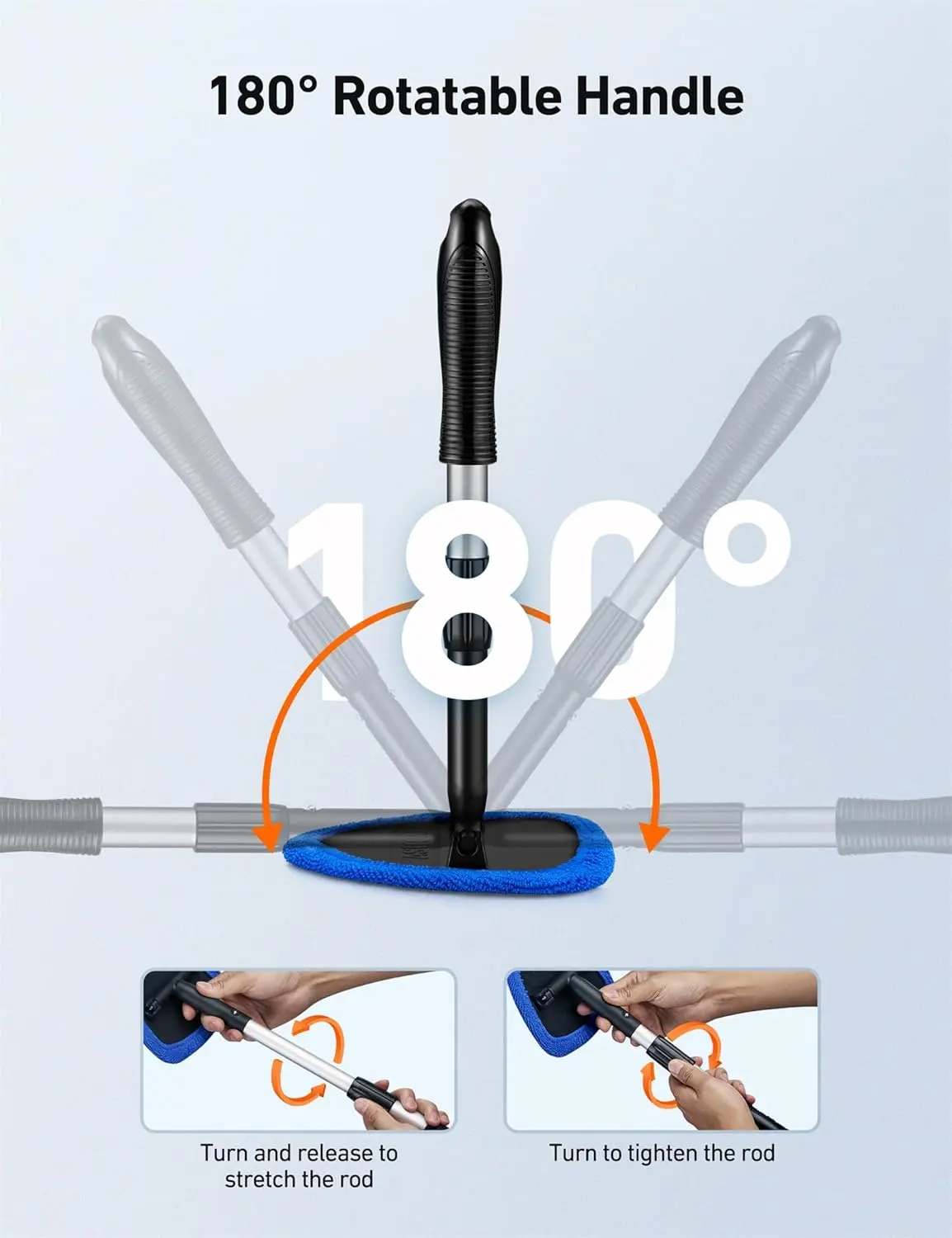 Windshield Cleaning Tool, Microfiber Car Window Cleaning Tool with 4 Reusable,Washable Microfiber Pads,Extendable Handle,Auto Interior Exterior Glass Wiper Car Glass Cleaner Kit,Car Cleaning Supplies