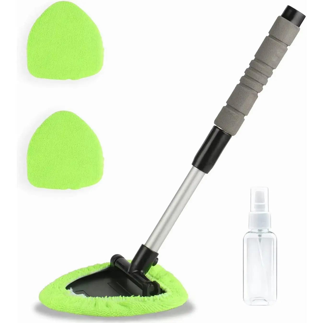 ăComplete Cleaning Kită: This car windshield cleaner tool kit comes with 1 triangular telescopic EVA pole , 3 reusable microfiber bonnets, and 1 empty spray bottle. Thoughtfully designed with a compact layout and complete accessories, it helps you effectively clean fog, dust, and grime from corners and tight spaces with ease.