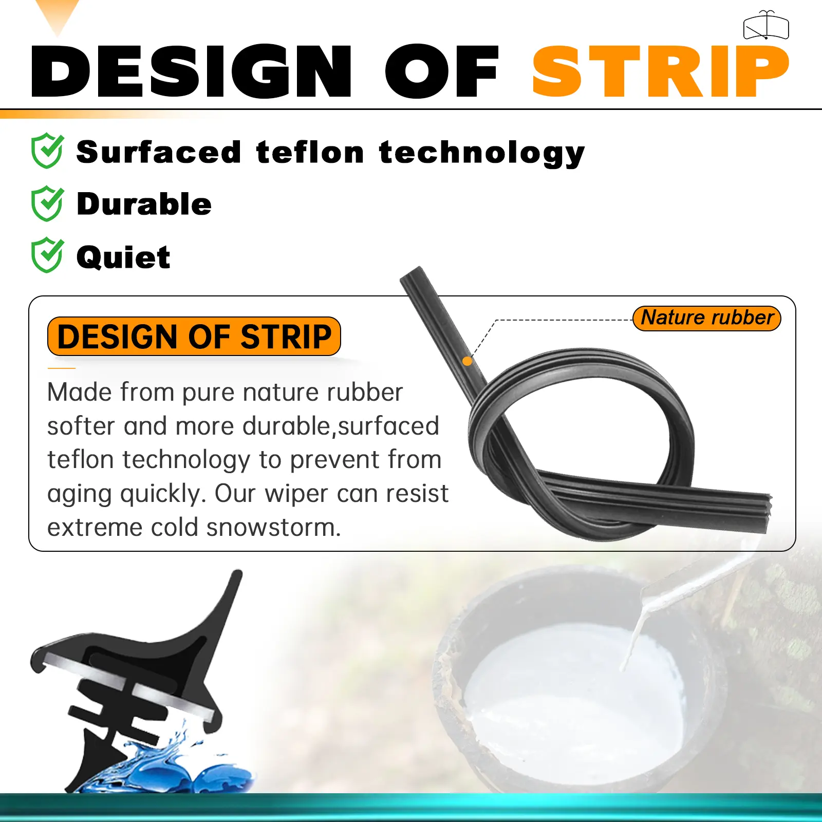 ·Innovative Design: High-tensile memory spring steel sheets combined with red armor provide stable support and even pressure distribution to better contact the windshield, with no gaps or noise during operation. Tested through 1.5 million cycles.