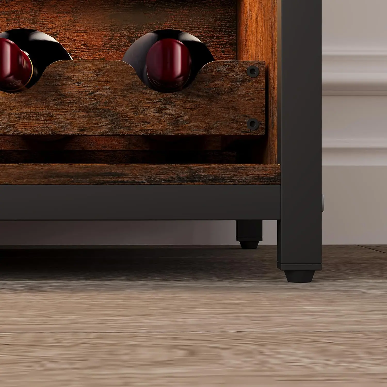 ·Stable Metal Frame + Leveling Feet: Built with a sturdy metal frame and adjustable leveling feet for wobble-free use on uneven floors—keeps glassware and bottles safer.
