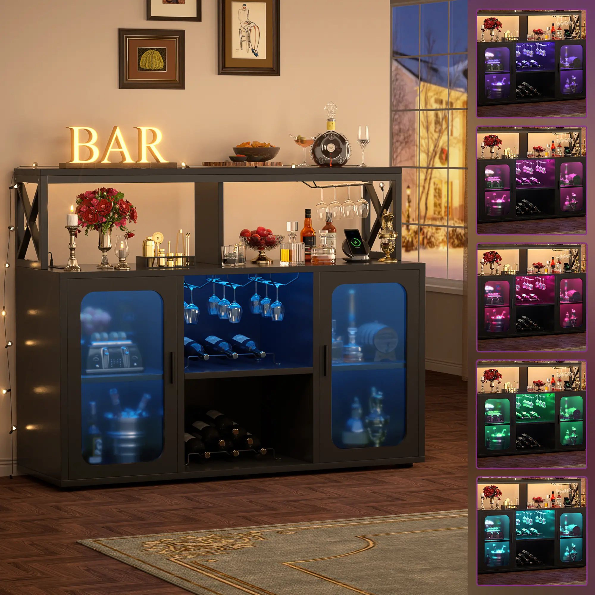 2. The wine cabinet Features a timed RGB light strip
