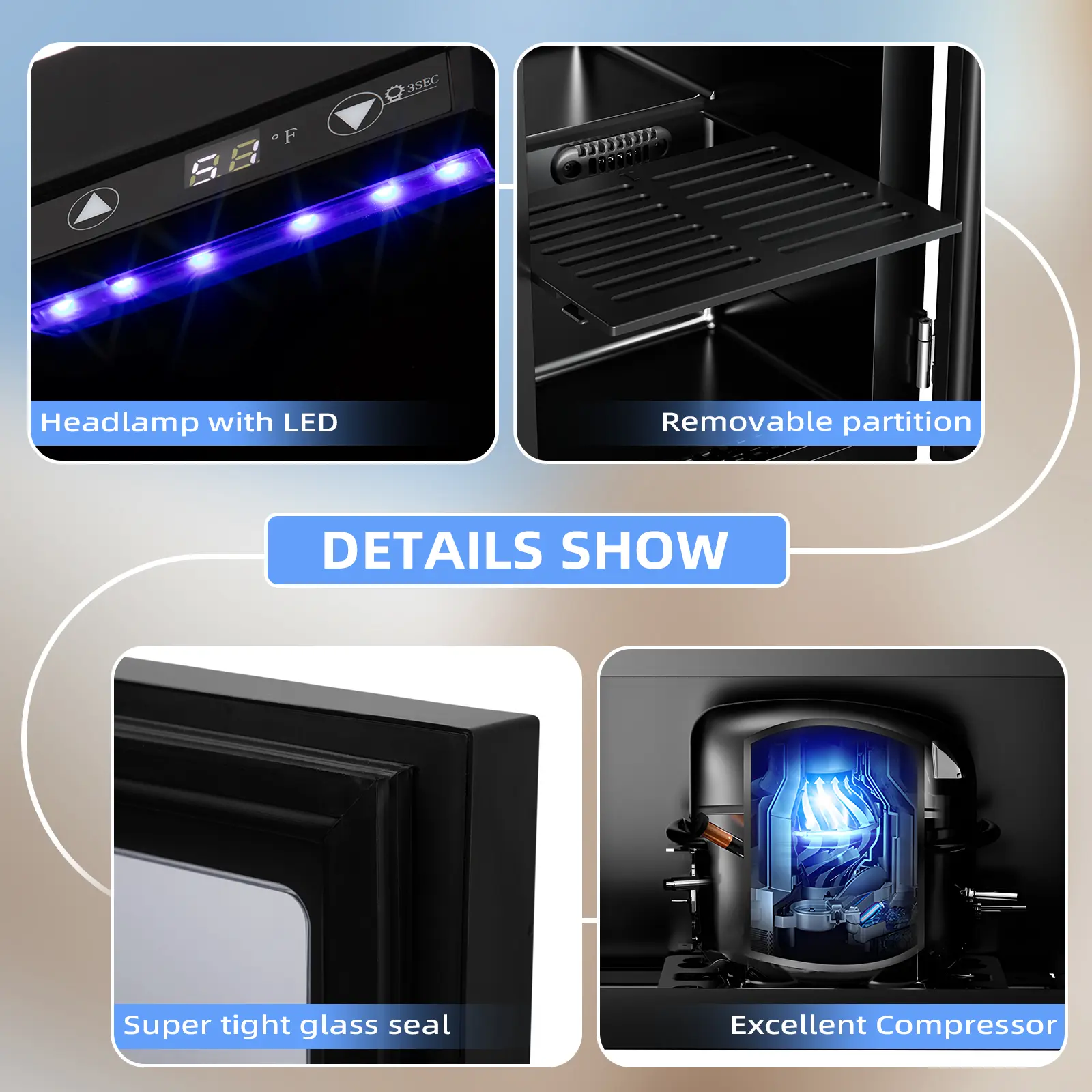 Incredible quality. LED screen super helpful and the light adds a mysterious quality too. I’m having this as my desk fridge/fridge for guests and it is PERFECT.