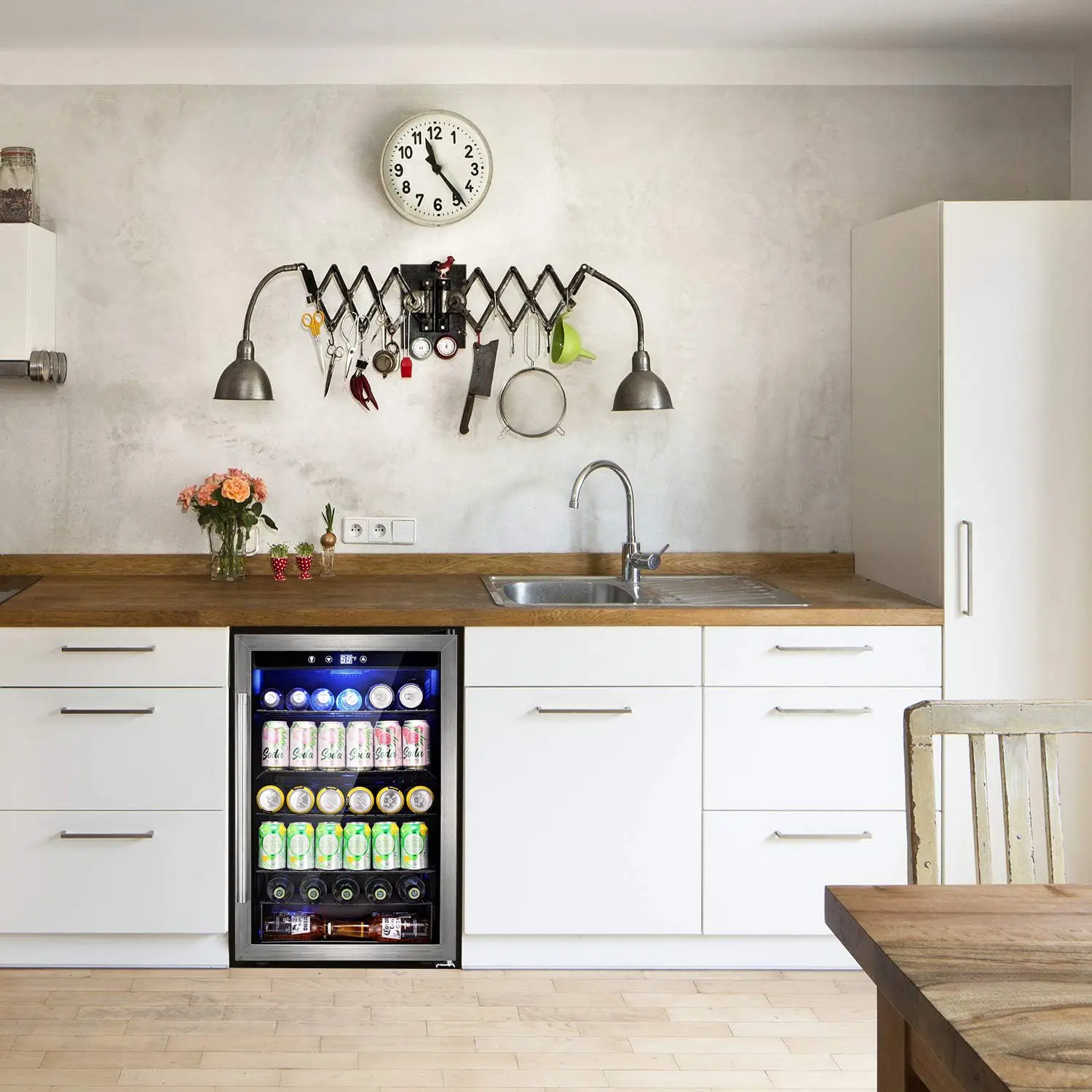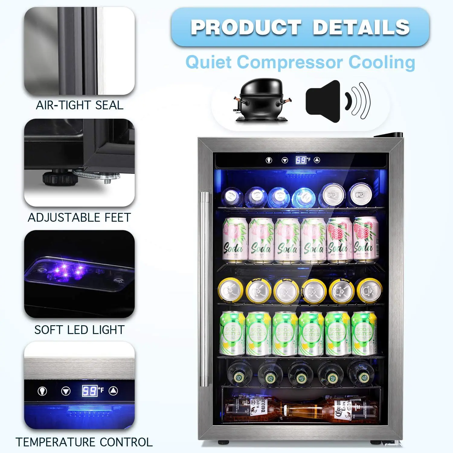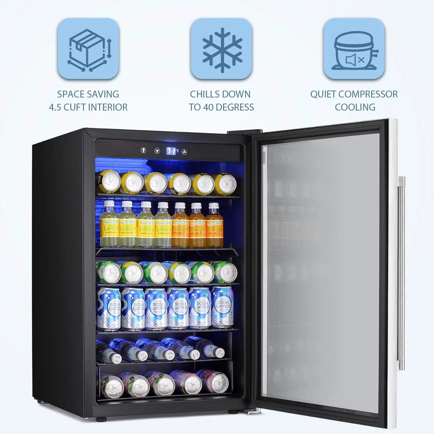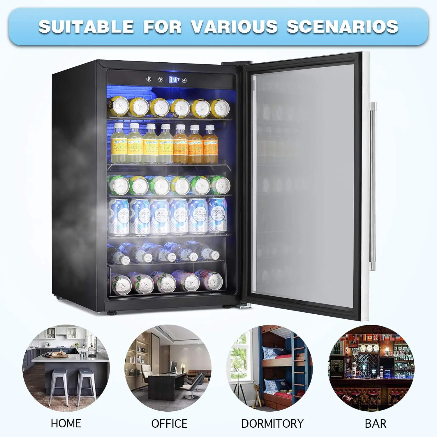Soft LED lights light up the corner of your room, at the same time, you can clearly see the amount of drink in your Beverage Refrigerator. It can be used with your furniture to make your room more stylish.Conveniently to take drink at night.