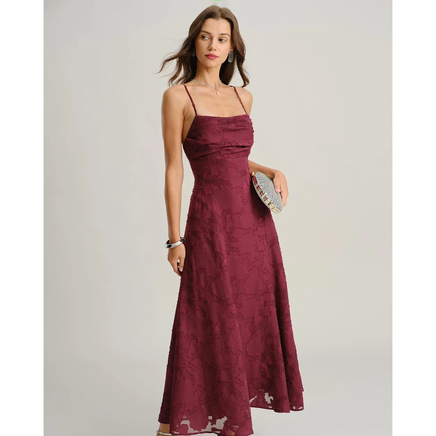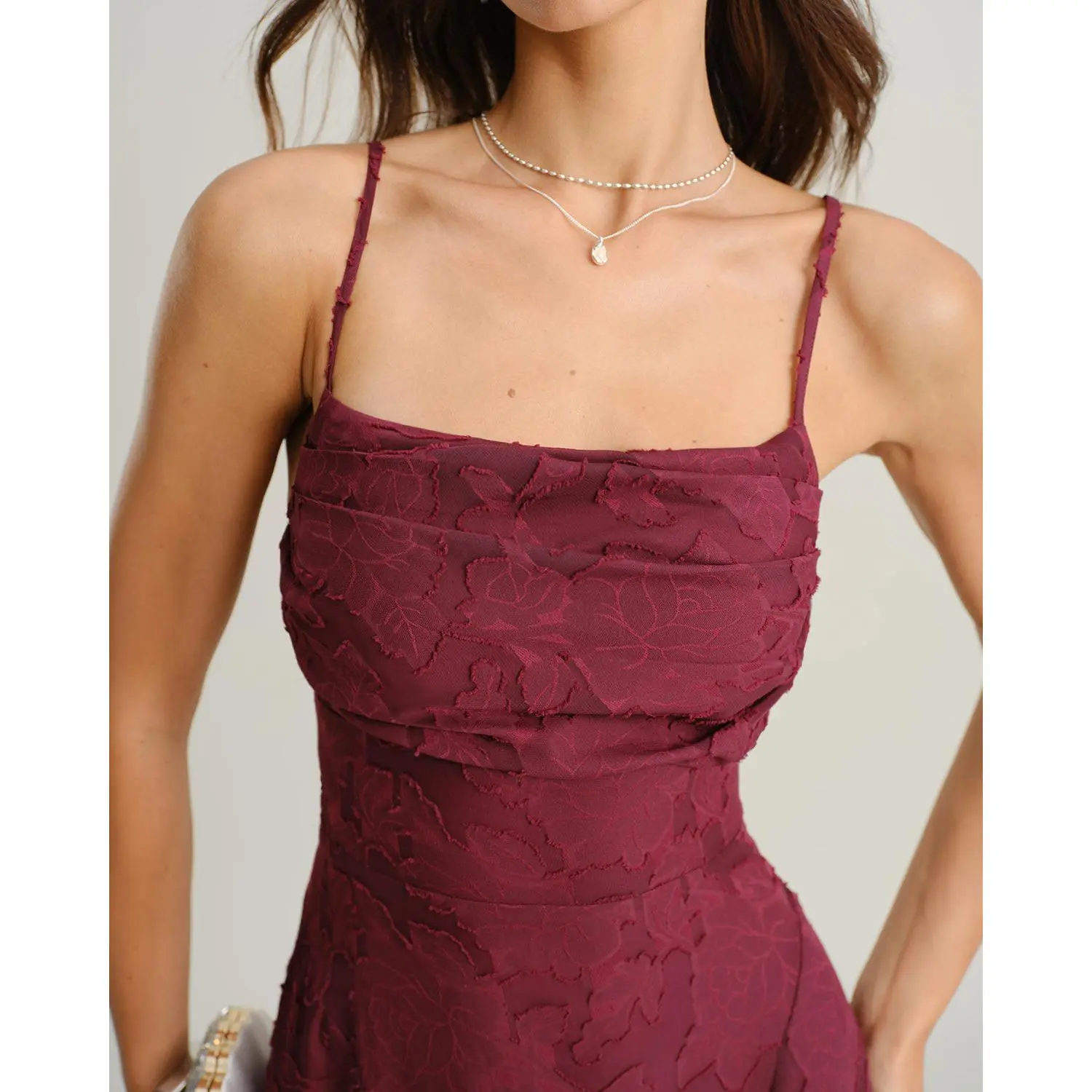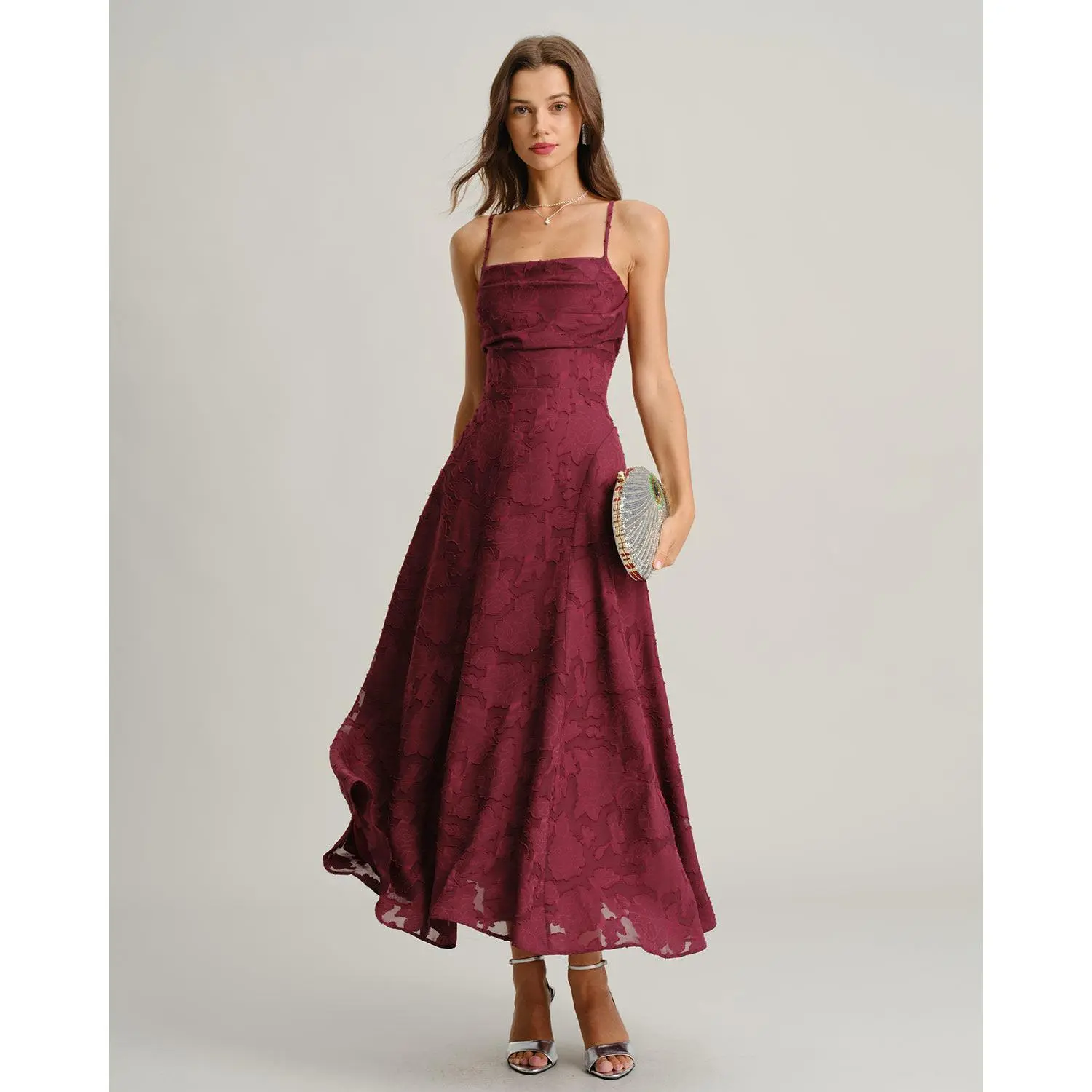 5. Wine Red Jacquard Slip Maxi Dress SpringStatements