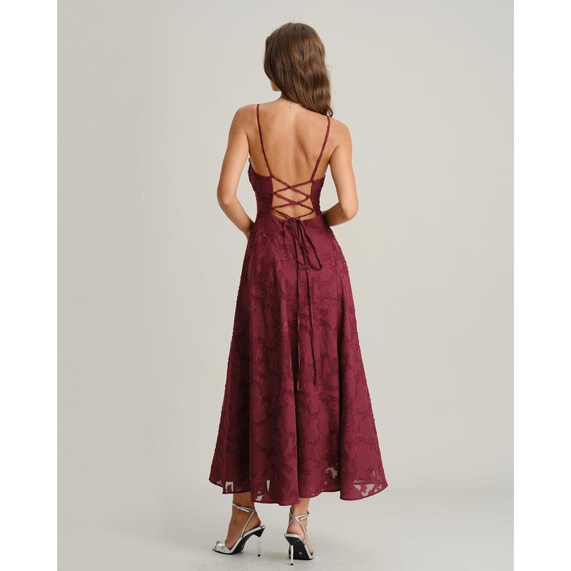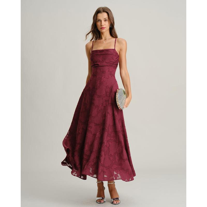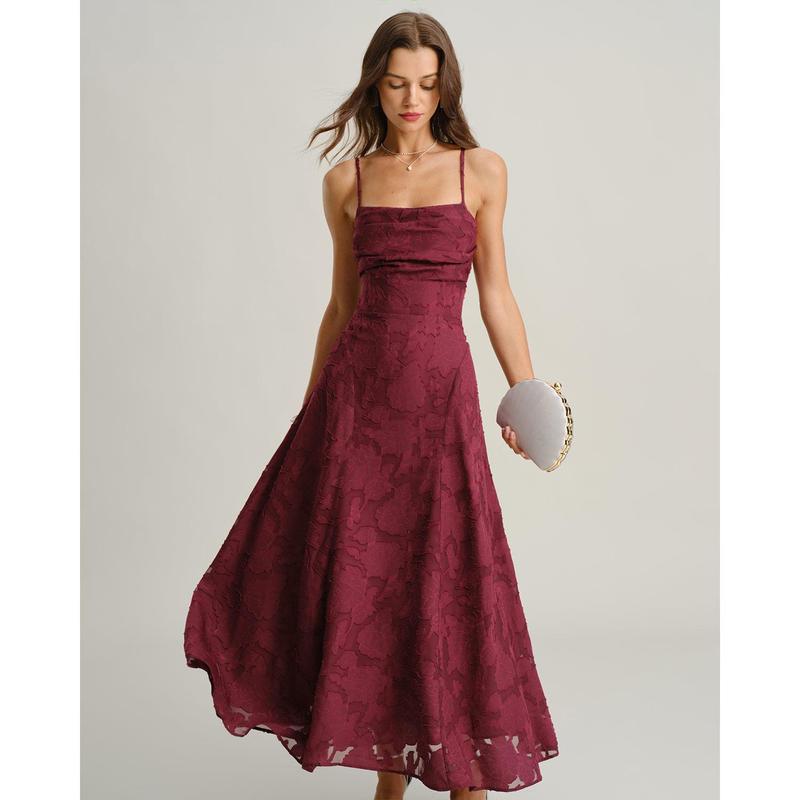 Obsessed with this elegant dress perfect for wedding guest or any occasions!  #weddingguestdress #fallweddingguestdress #falldresses #winereddress #fallfashion