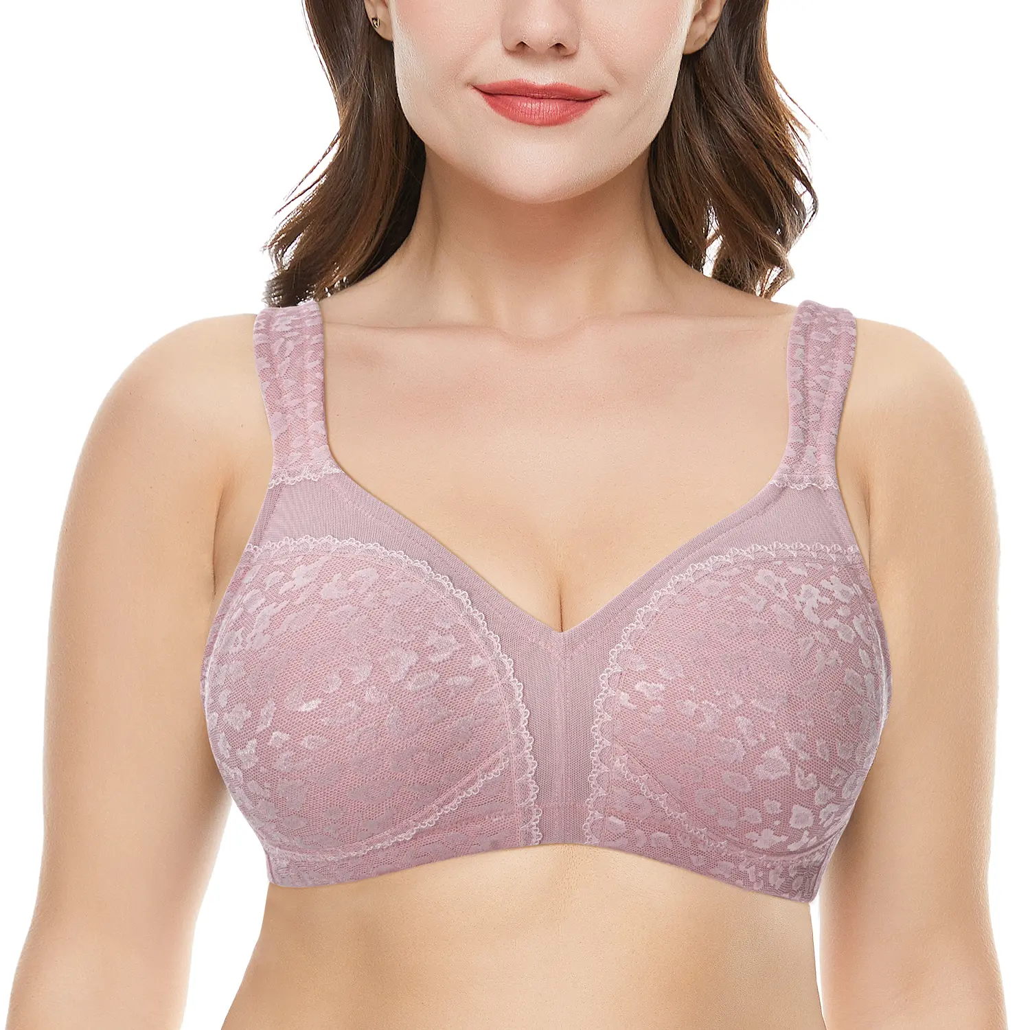 5. Wingslove Minimizer Bras for Women Full Coverage Plus Size Bra Comfort Unlined Wireless Floral Lace Bra for Heavy Breast