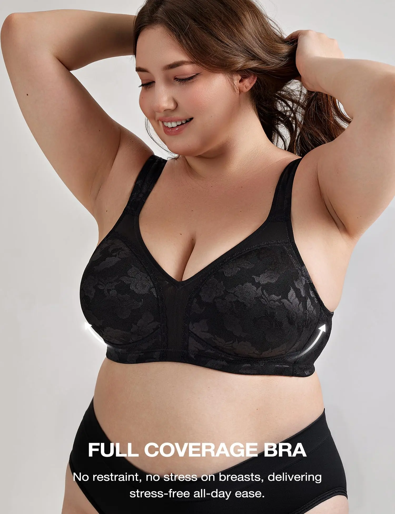 ·Full coverage bra with soft cups greatly covers your breasts, offer you a maximum comfort-no itching, no scratching.