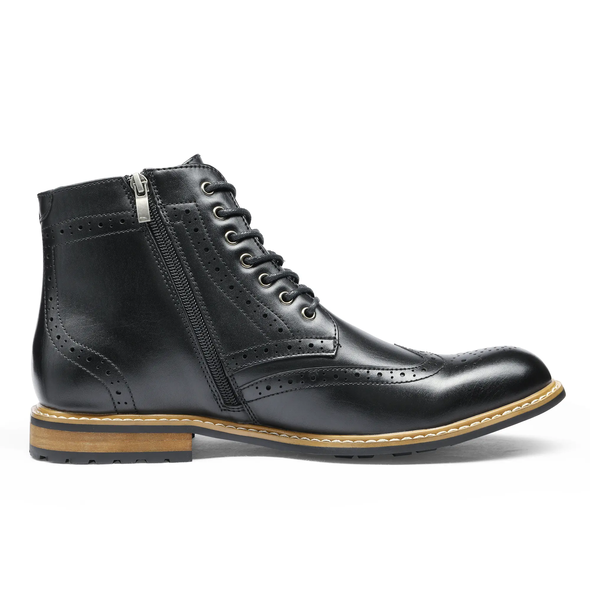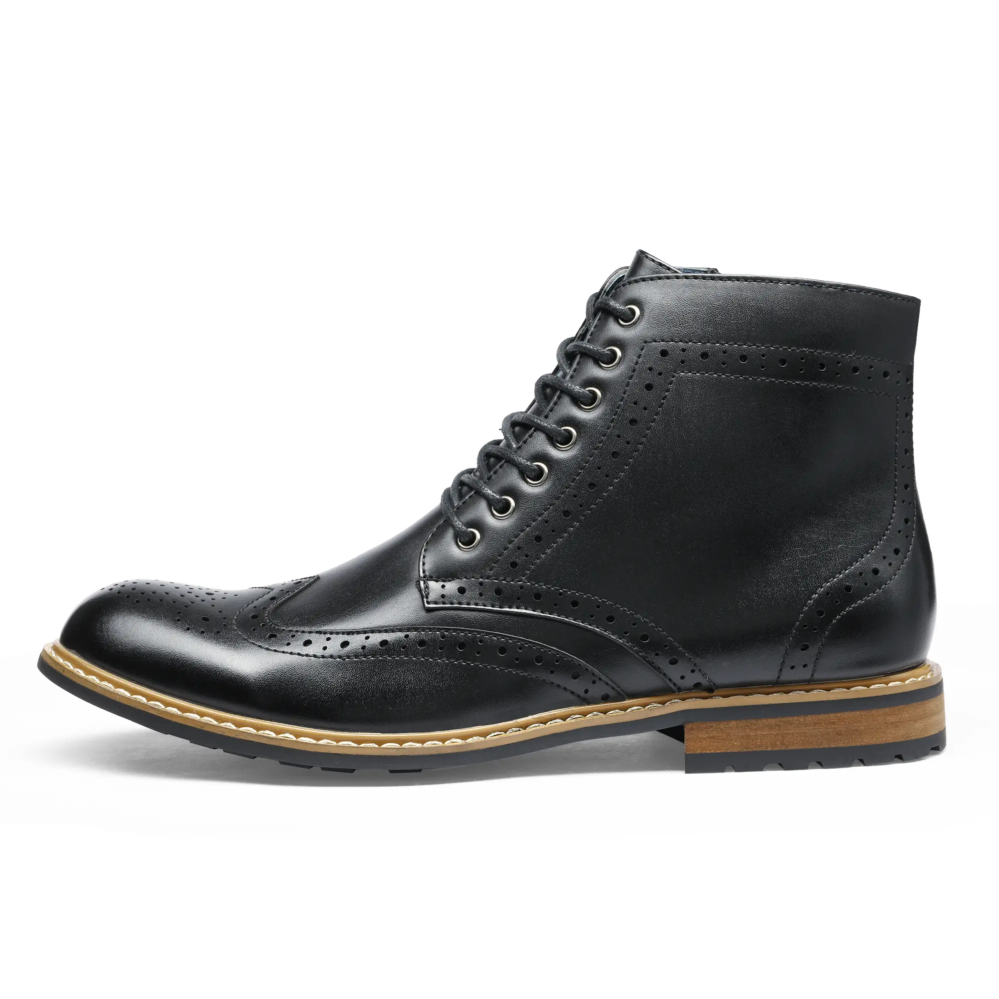 Take flight with ease across the board in Bruno Marc's wingtip ankle boots. Across the board, these wingtip combat boots are the best of the best. They excel in all areas. When it comes to comfortability, expect superior comfort and support with our latex padded insole. The intricate attention to detail is a testament to Bruno Marc's unfailing ability to bring out your classy charming nature. These men's oxford boots deliver unbeatable traction and support with clarity and ease.