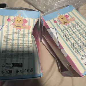 I got 2 boxes, I got the cow one and the piglet with the carrot, when I got the boxes, one wasn’t in the best shape, when I turned the cow around there was a hole, but other than that these are very cute!